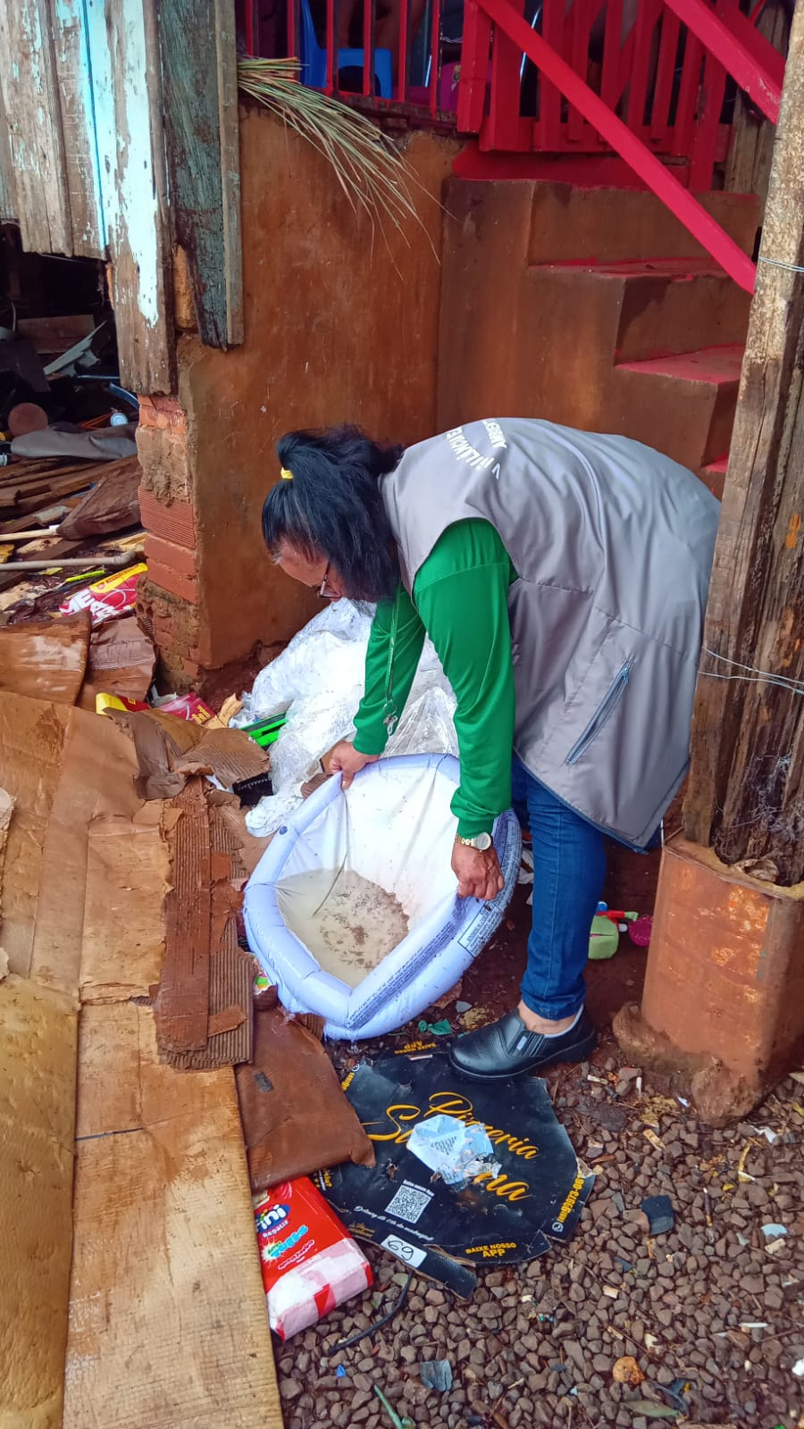 Além das visitas domiciliares foram atendidas denúncias, notificações para adequação, realizadas borrifações com larvicida nas reciclagens do Bairro Pinheirinho, controle e eliminação de focos do mosquito.