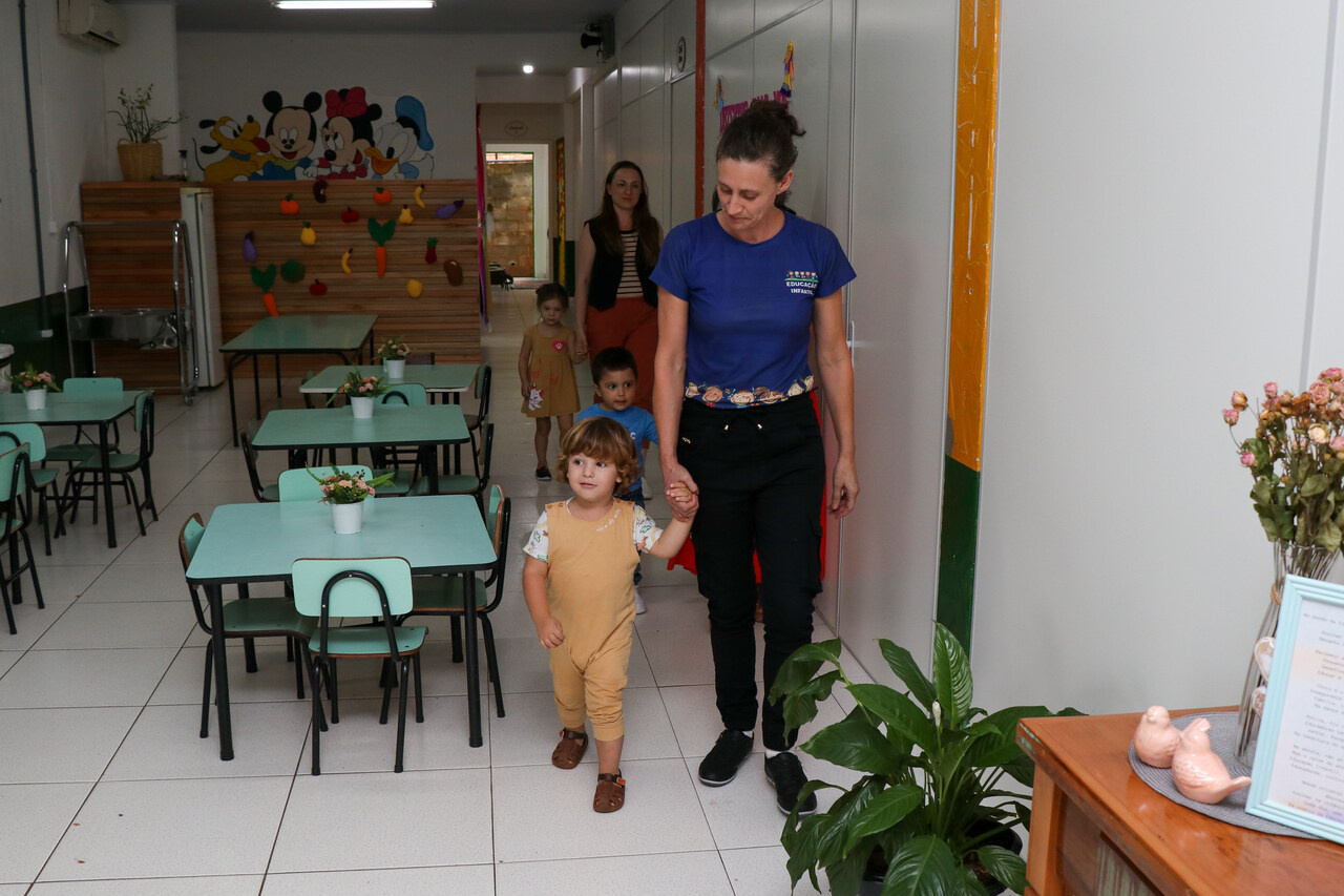 As aulas na Educação Infantil iniciaram hoje (16) na Rede Municipal de Ensino em Chapecó. Para receber as famílias e as crianças, as instituições educativas prepararam um ambiente especial com brincadeiras, músicas e materiais diferenciados. A organização do atendimento foi pensada em forma de pequenos grupos, respeitando a disponibilidade dos familiares.