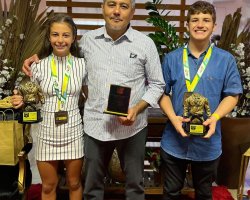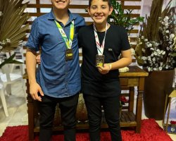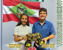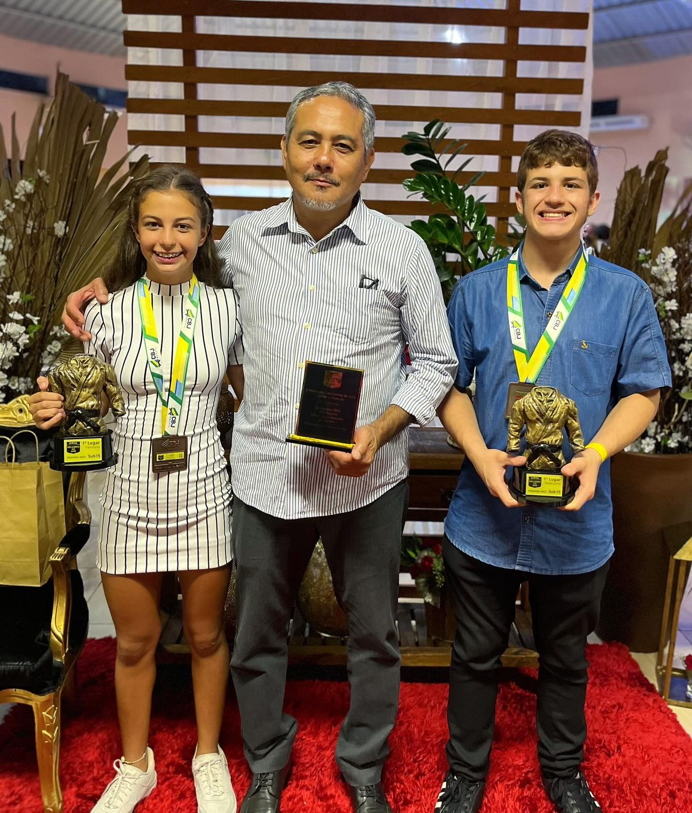 Guilherme e Emanuela, além da medalha de ouro, receberam troféu de Melhor Atleta 2023 e estão em primeiro lugar no Ranking de Santa Catarina.