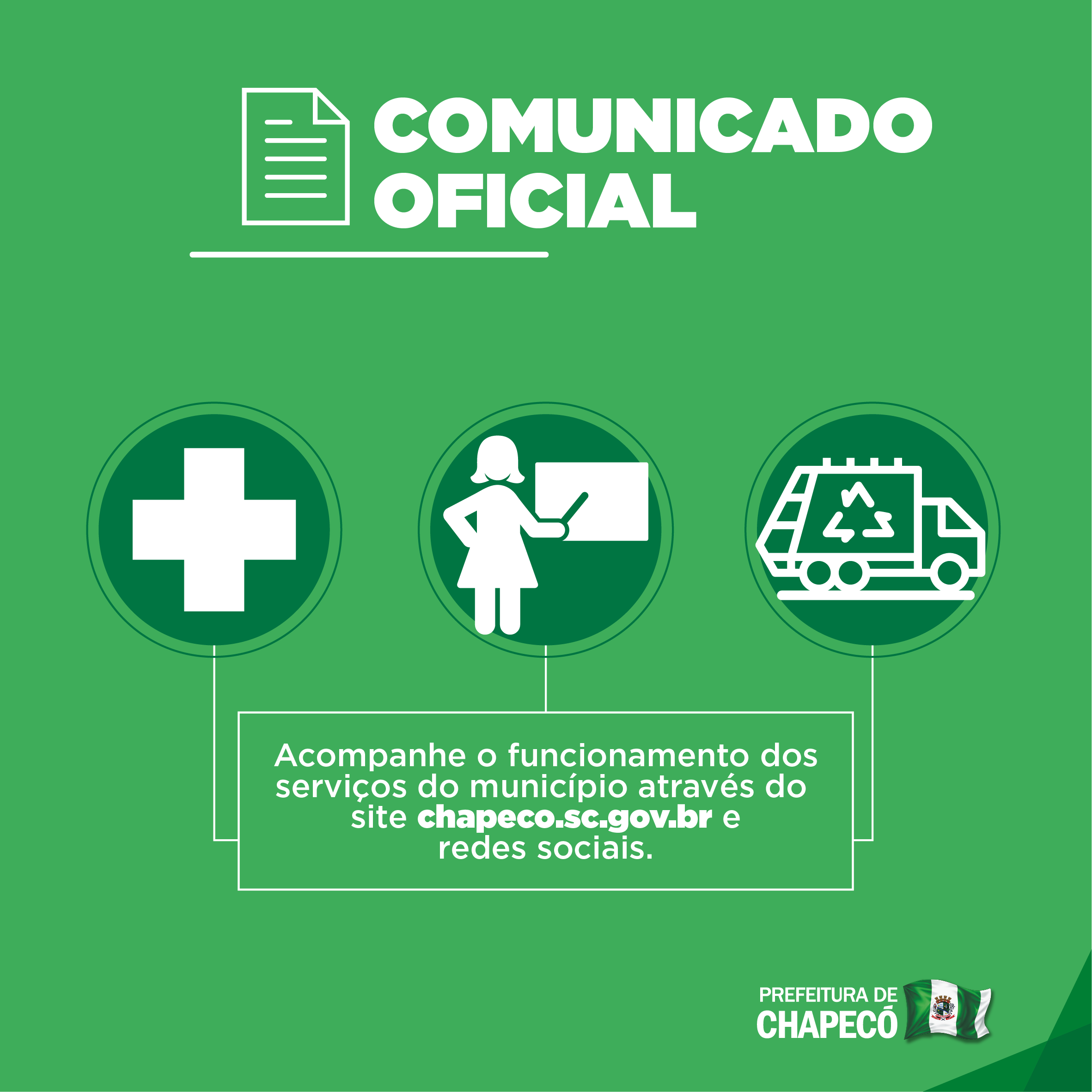 - Cultura: As aulas referentes ao Programa Arte Cidadã e Escola de Artes de Chapecó seguem normalmente;