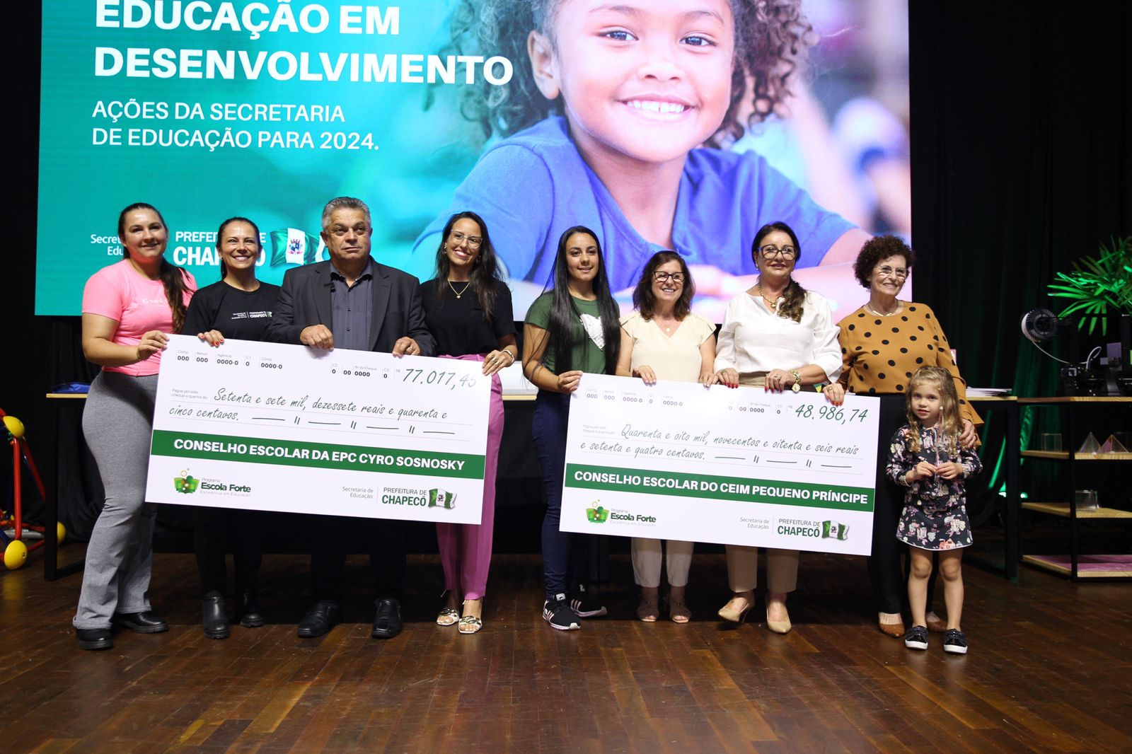 A Prefeitura de Chapecó anunciou ontem à noite, no Centro de Eventos, mais de R$ 160 milhões que estão sendo investidos área de Educação em 2024. Os recursos são da Secretaria de Educação e incluem novas escolas, melhorias dos espaços já existentes, Centros Multiuso, Arena Poliesportiva, equipamentos e material didático.