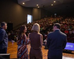 A Secretária de Educação de Chapecó, Astrit Tozzo, representando o Prefeito João Rodrigues na abertura oficial, destacou a importância dos eventos e os debates na área da educação. Estamos muito felizes por receber novamente o Seminário da Amosc, nesta 4ª Edição, para debater sobre a implementação do Currículo do Ensino Fundamental. Estas trocas de ideias são essenciais para que possamos compartilhar o que cada um de nós tem feito e também para nos alertar sobre o que ainda precisamos fazer, afirmou.