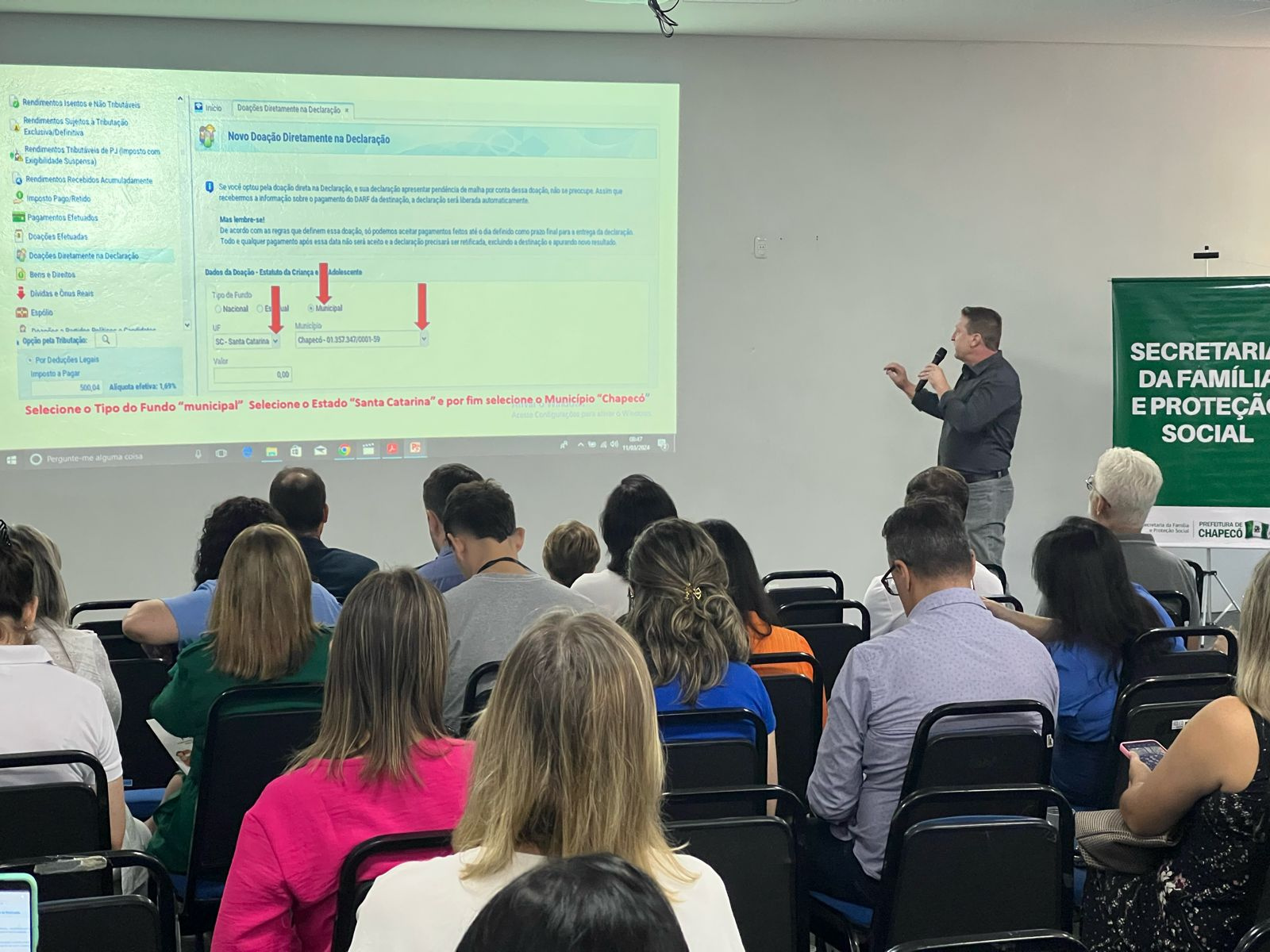 Cerca de R$ 15 milhões de arrecadação do Imposto de Renda que poderiam ser destinados para projetos sociais em Chapecó são enviados anualmente para o Governo Federal, em Brasília. Em Chapecó, no ano passado, foi captado cerca de R$ 1 milhão, segundo a secretária da Família e Proteção Social, Isabel Trierveiler Machado. E esse número era muito menor. Por isso na manhã desta segunda-feira foi realizada a terceira edição do Café da Manhã da Campanha de Destinação do Imposto de Renda para os Fundos Especiais, realizado pela Secretaria da Família e Proteção Social da Prefeitura de Chapecó, Conselho Municipal dos Direitos da Criança e do Adolescente de Chapecó, Conselho Municipal dos Direitos do Idoso, com o apoio da Fiesc, Acic e Sindicont. O ato foi no Centro de Cultura e Eventos de Chapecó.