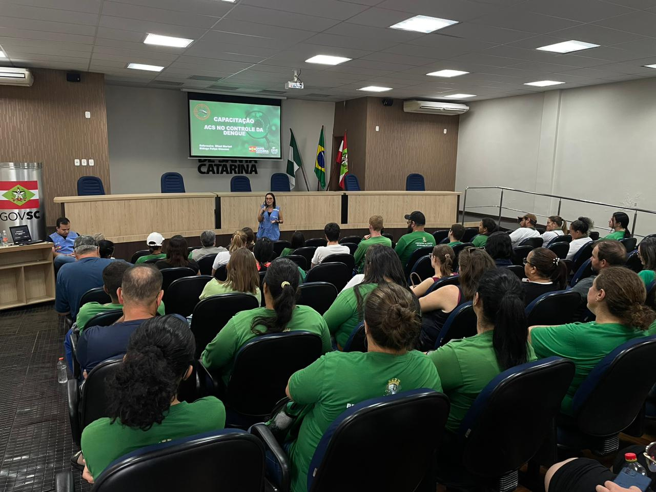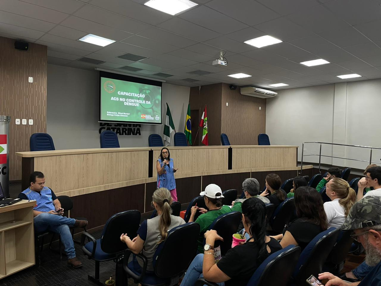 Cerca de 90 Agentes de Combate a Endemias da Secretaria de Saúde de Chapecó estão participando na manhã desta quinta-feira de uma capacitação sobre a Dengue e bloqueio de transmissão. A atividade iniciou às 8h30 e vai até às 11h30, no auditório da antiga ADR, que também sediou e extinta Secretaria do Oeste, na esquina das ruas Floriano Peixoto e Nereu Ramos.