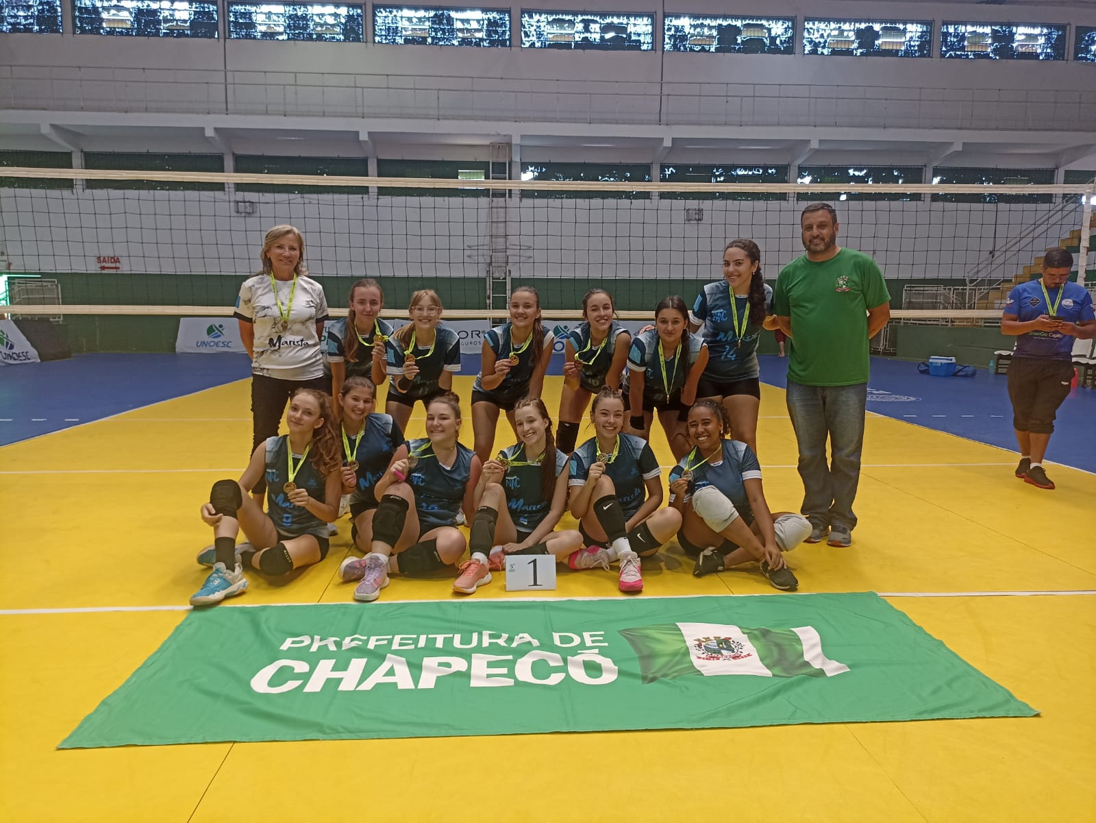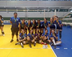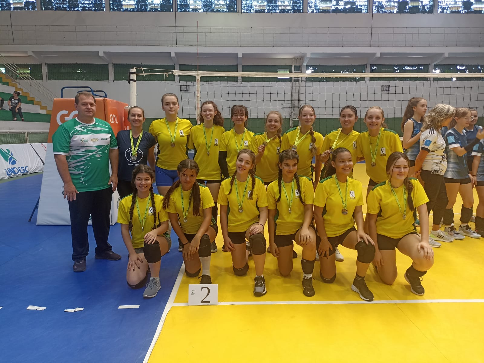 Após os jogos do masculino aconteceram as disputas do feminino. Na briga pela medalha de Bronze a EEB Lourdes Lago levou a melhor vencendo o IFSC por 2 sets a 0 (25x21 e 25x10). A disputa pela medalha de Ouro colocou frente a frente o Colégio Marista e a EEB Bom Pastor. Melhor para as meninas do Marista que venceram por 2 sets a 0 (25x19 e 25x17) e ficaram com o Ouro e a vaga para a etapa Microrregional.