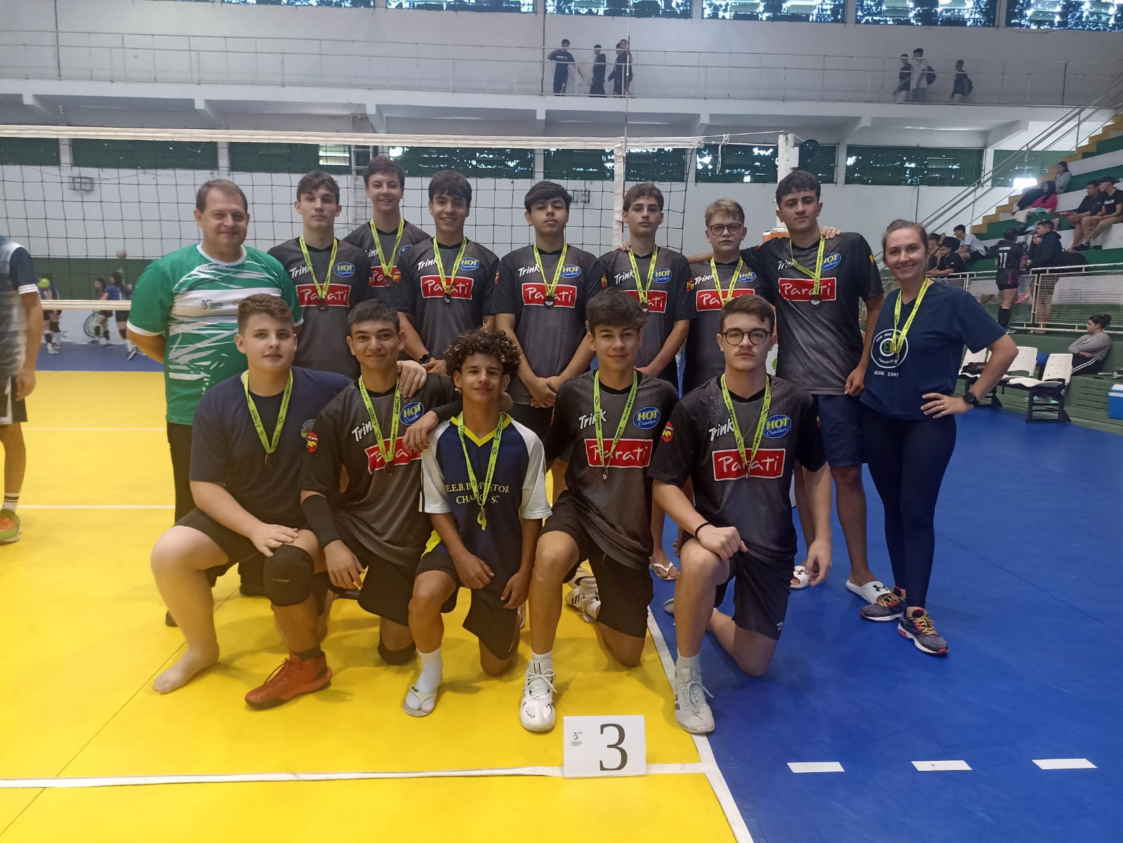 O Ginásio Ivo Silveira recebeu na manhã desta terça-feira (26) os jogos decisivos da Modalidade de Voleibol masculino e feminino dos JESC 15 a 17 anos fase municipal e o Colégio Marista ficou com a medalha de Ouro nos dois naipes.