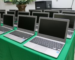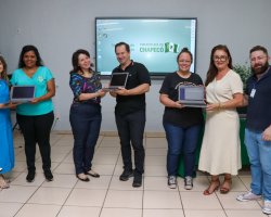 A Secretaria Municipal de Educação realizou a entrega de chromebooks aos professores responsáveis pelo componente curricular de Pensamento Computacional. O momento ocorreu no Auditório da SEDUC durante a formação pedagógica da qual eles participavam.