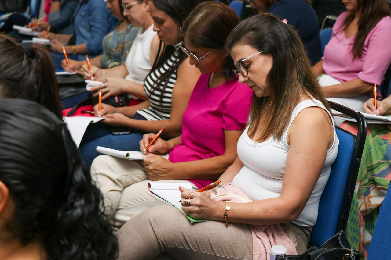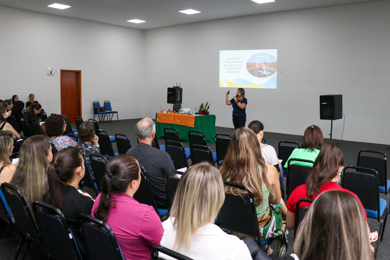 A Secretaria Municipal de Educação está promovendo nos dias 04 e 05 de abril, no Centro de Eventos Plínio Arlindo de Nes, a formação continuada: Processos de Aprendizagem: entre saberes, intencionalidades e experiências, conduzida pela palestrante convidada Márcia Fernandes. O público-alvo são as equipes gestoras das escolas e centros de educação infantil da Rede Municipal, as quais foram divididas em dois grupos, e cada um deles participa de apenas um momento, totalizando 8h de formação.