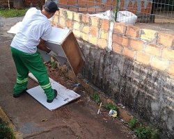 As atividades do projeto Bota Fora, hoje, sexta-feira (05), estão acontecendo no Bairro Líder. A população pode descartar móveis velhos, sofás, colchões, eletrodomésticos e eletroeletrônicos, que as equipes recolhem e fazem o correto descarte.
