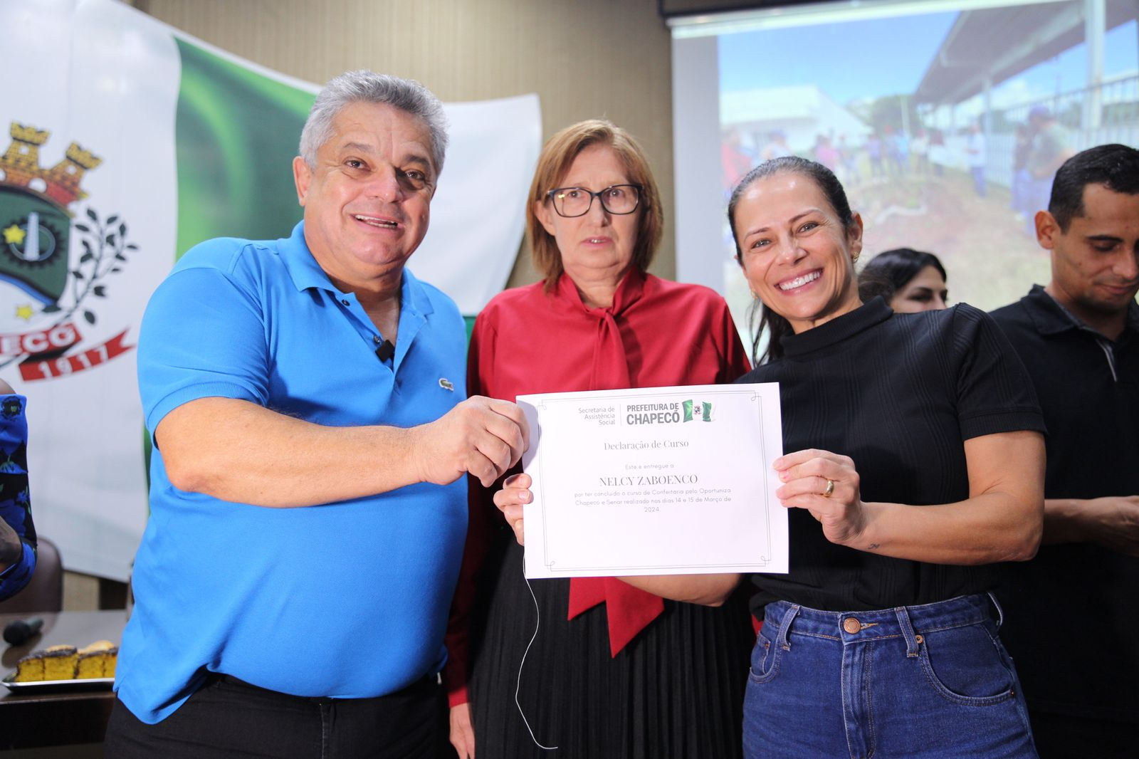 O Oportuniza Chapecó, programa ofereceido pela Administração Municipal, por meio da Secretaria da Família e Proteção Social, formou 25 alunos nesta terça-feira (09), nos cursos de Confeitaria, Jardinagem e Processamento de Frango. O ato aconteceu no auditório da Prefeitura e reuniu alunos, familiares, autoridades e comunidade.