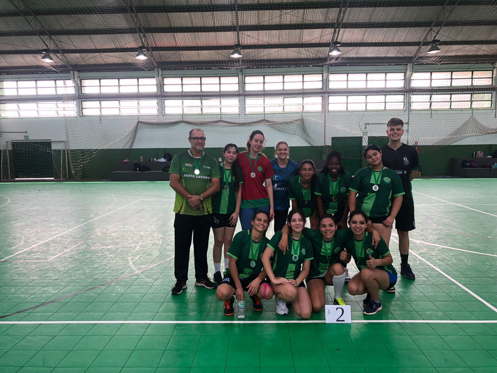No feminino, a primeira semifinal foi entre Colégio Marista e Colégio Adventista, o placar foi de 12x03 para o Marista. Na segunda semifinal, se enfrentaram EEB Valesca Parizotto e IFSC, melhor para o Valesca que venceu por 08x03. Na disputa do terceiro lugar, o IFSC venceu por 04x01 o Colégio Adventista e ficou com a medalha de bronze. Na disputa do primeiro lugar, o Colégio Marista venceu a EEB Valesca Parizotto por 08x01, ficando com a medalha de Ouro e a vaga na etapa microrregional.