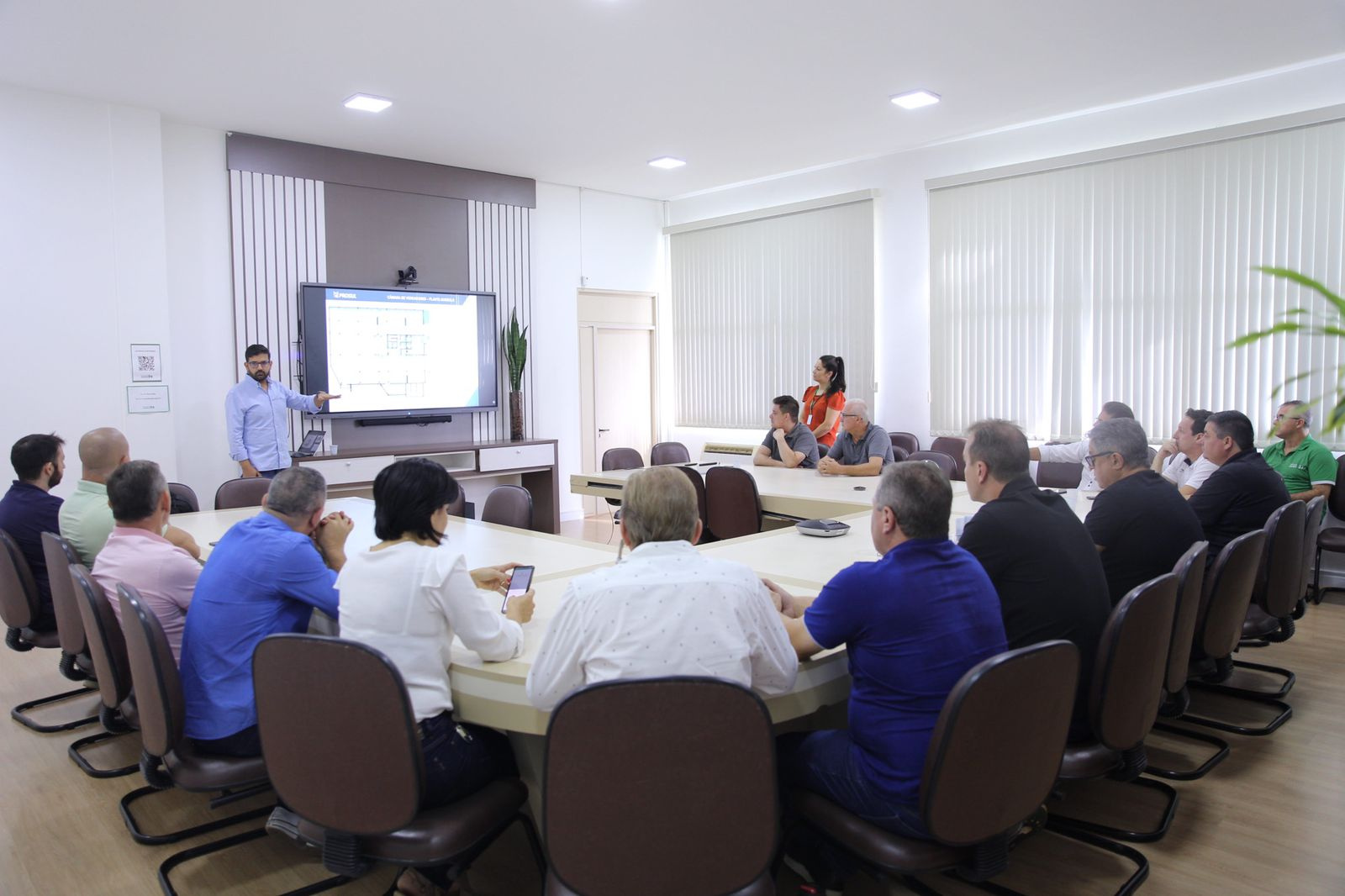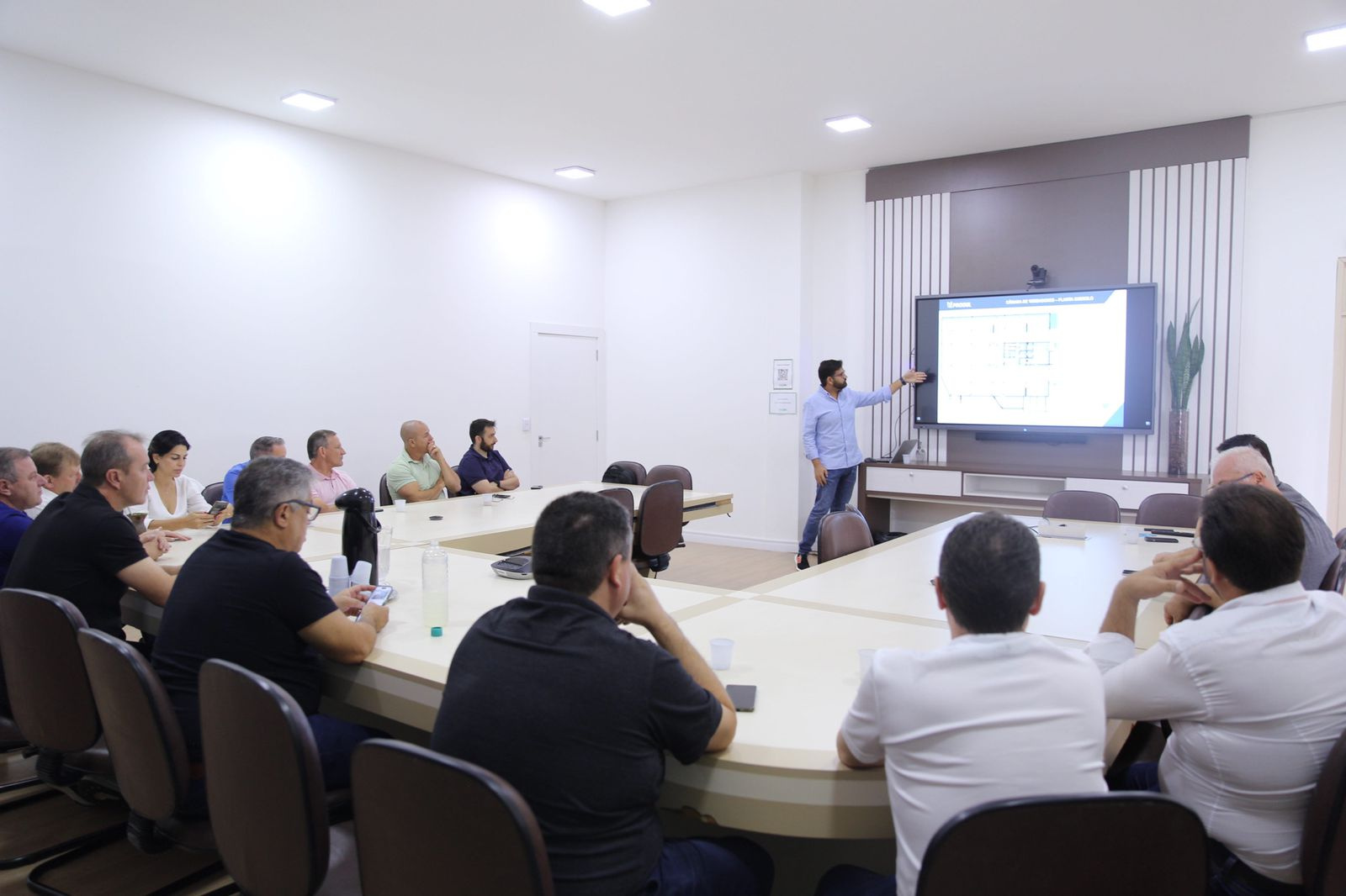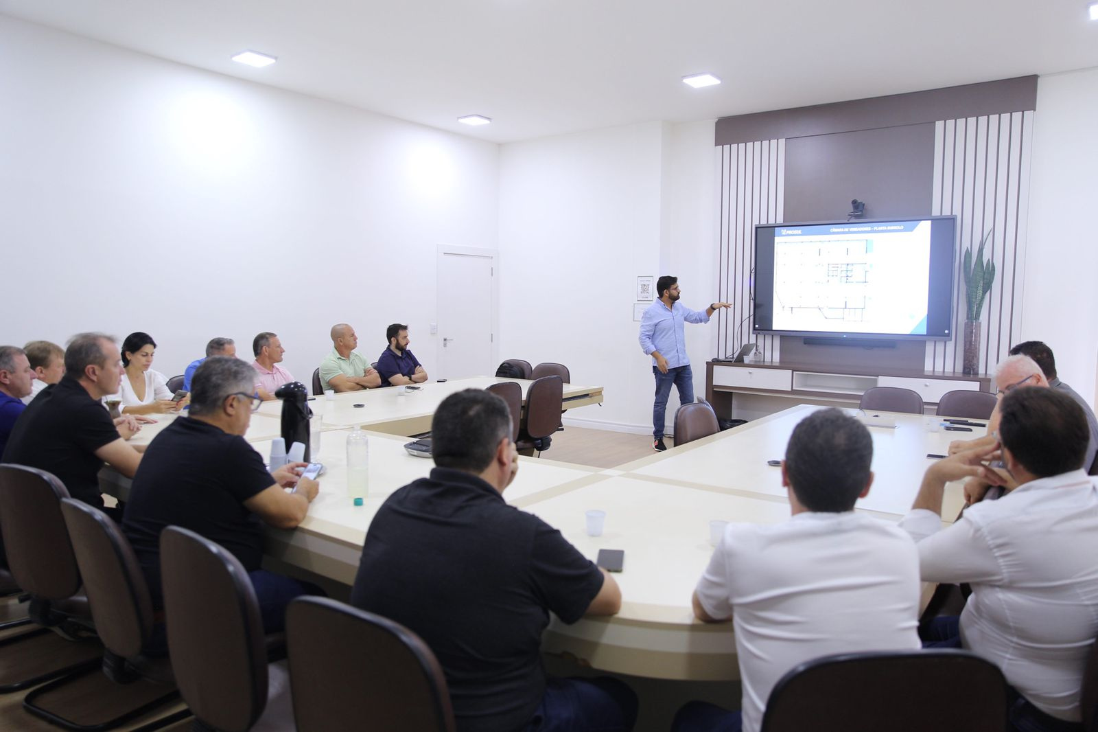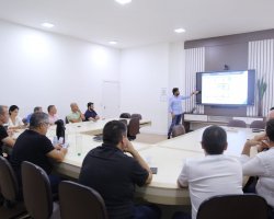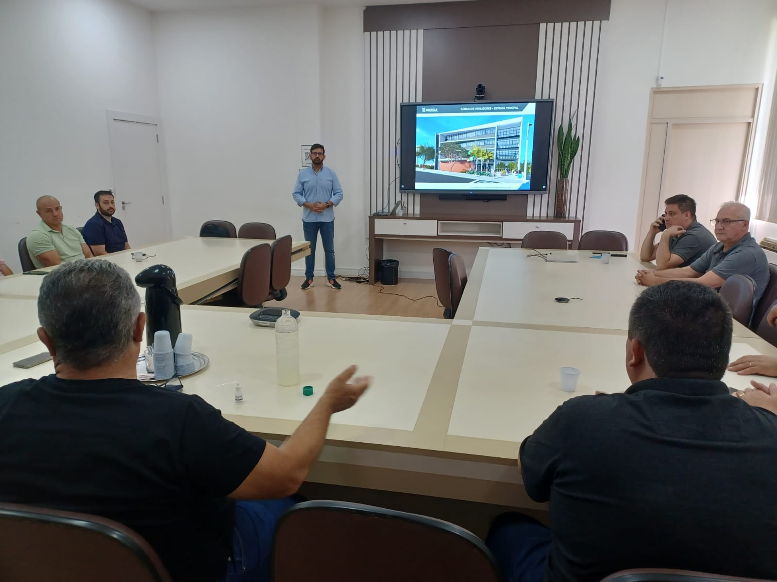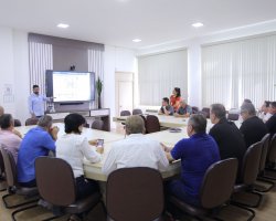 O projeto da sede própria da Câmara de Vereadores foi apresentado na manhã desta sexta-feira (12), na sala de reuniões da Prefeitura, pela Prosul, com a presença do prefeito João Rodrigues, do secretário de Desenvolvimento Sustentável e Obras Estruturantes, Maurício Lise da Rocha, e de 12 dos 21 vereadores, entre eles o presidente do legislativo, André Kovaleski.
