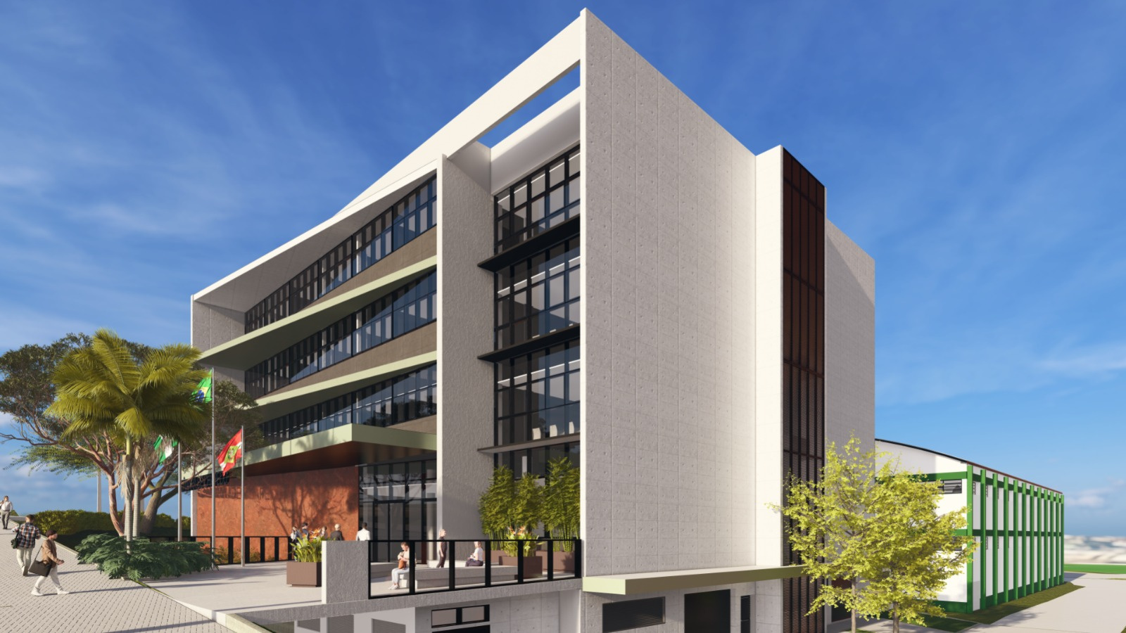 O prédio de cinco pavimentos e 4,2 mim metros quadrados ficará na esquina das ruas Clevelândia e Assis Brasil, atrás do ginásio Ivo Silveira. O acesso principal será pela Assis Brasil. No subsolo terá 38 vagas. No térreo, auditório para 200 pessoas e plenário. Nos três pavimentos acima haverá sete gabinetes em casa, além de estrutura administrativa, almoxarifado, sala de reuniões, imprensa, informática e RH.