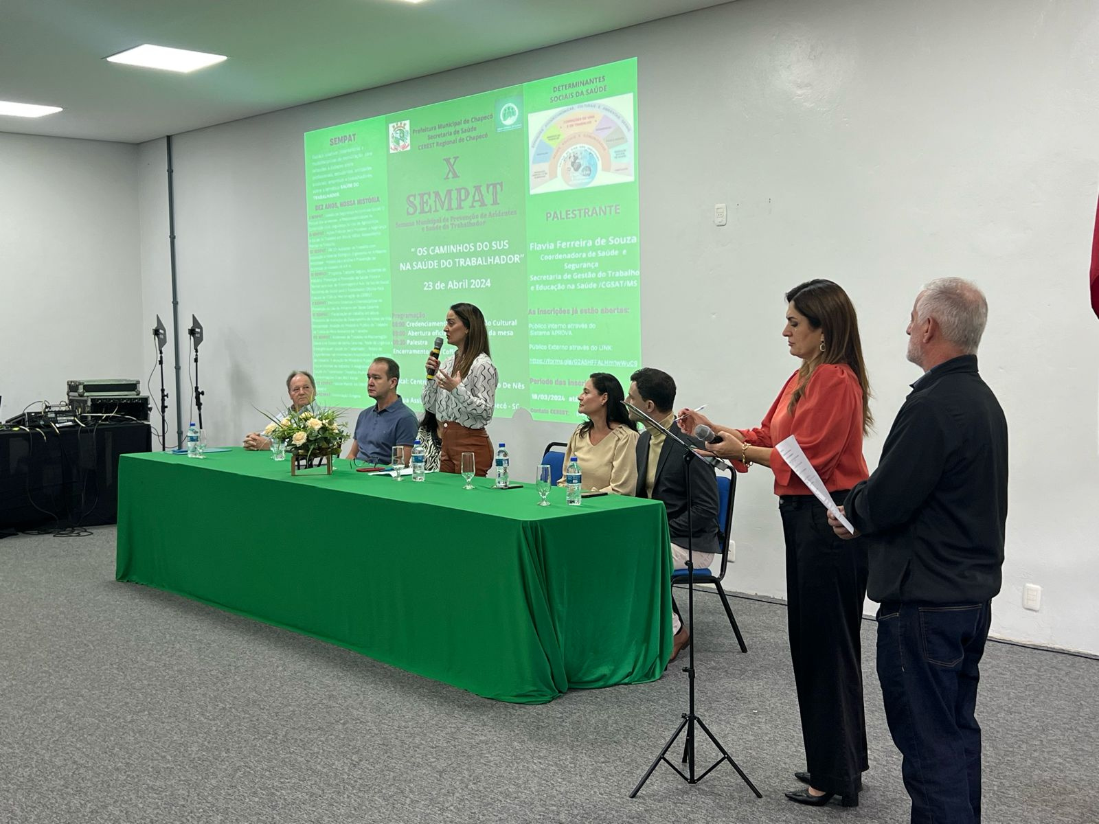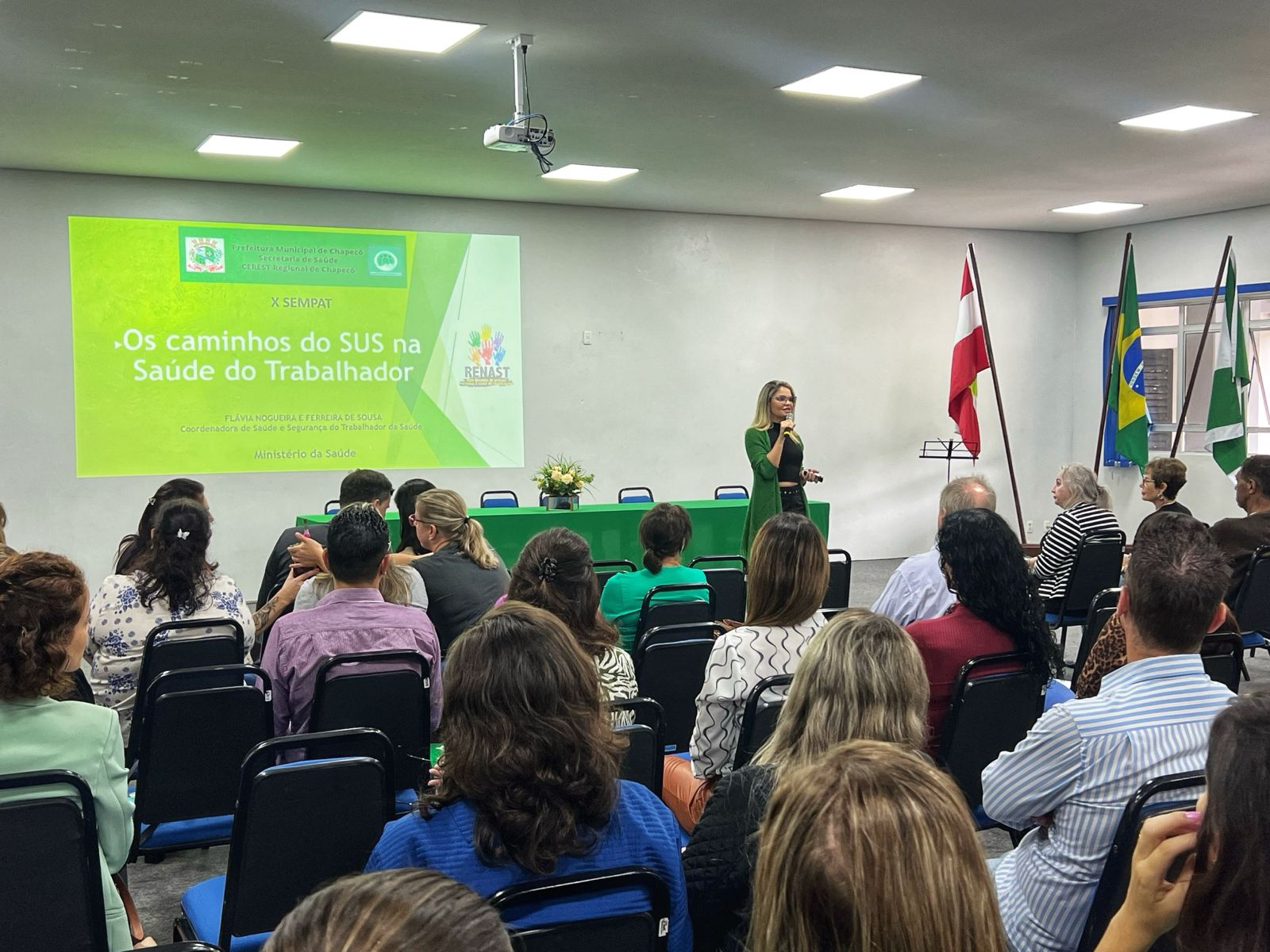 A palestra foi realizada pela coordenadora de Saúde e Segurança da Secretaria de Gestão do Trabalho e Educação na Saúde do Mato Grosso do Sul, Flávia Ferreira de Souza. A atividade faz parte da Semana Municipal de Prevenção de Acidentes e Saúde do Trabalhador do Município de Chapecó SEMPAT, instituída pela Lei Municipal nº 6283/12. Ela prevê que ações sejam realizadas anualmente, em alusão à data de 28 de abril "Dia Mundial em Memória às Vítimas de Acidente de Trabalho".