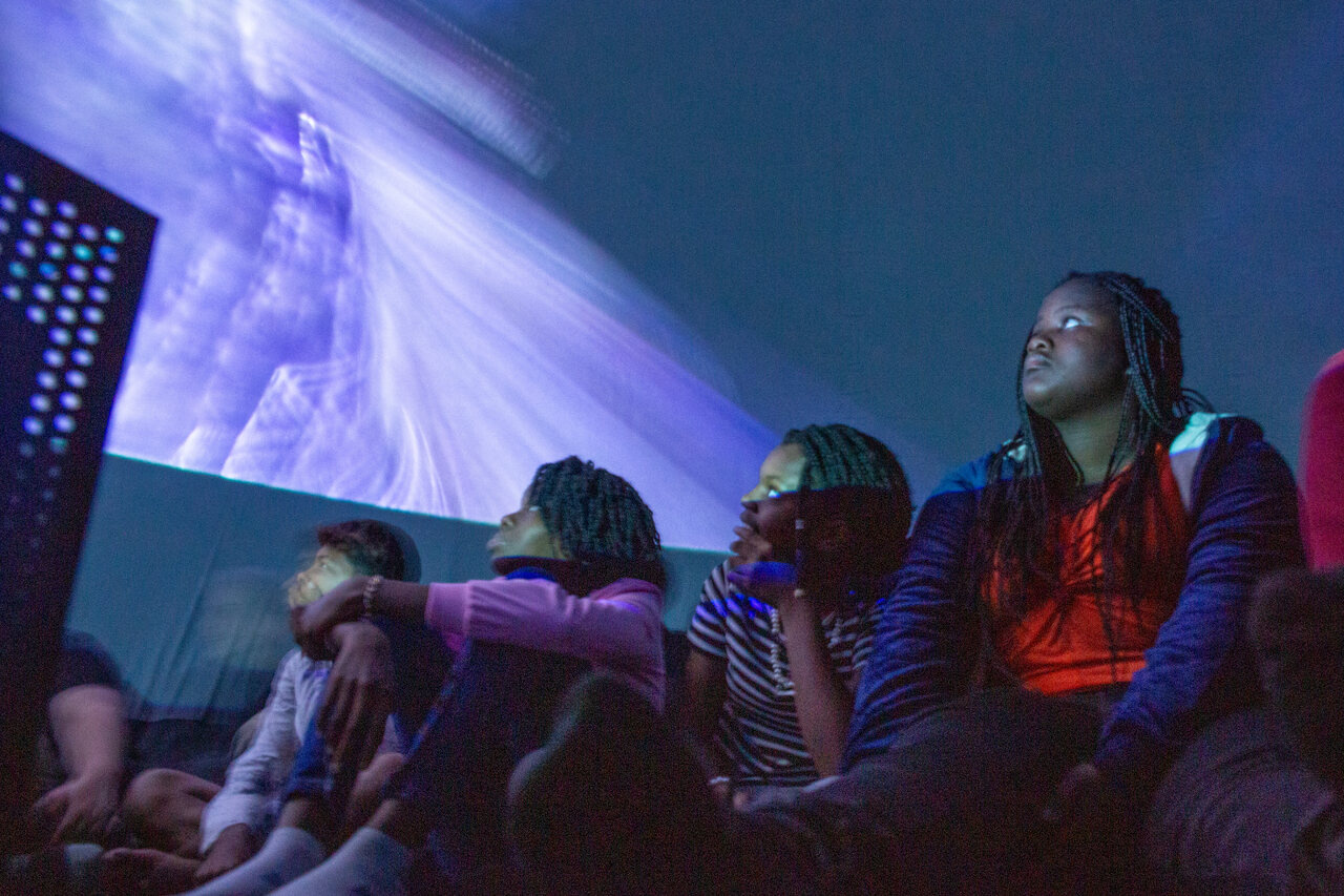 As imagens foram projetadas na cúpula do planetário, provocando a imersão dos espectadores. Eles também puderam fazer questionamentos para sanar dúvidas e curiosidades, enriquecendo ainda mais a aprendizagem deles.