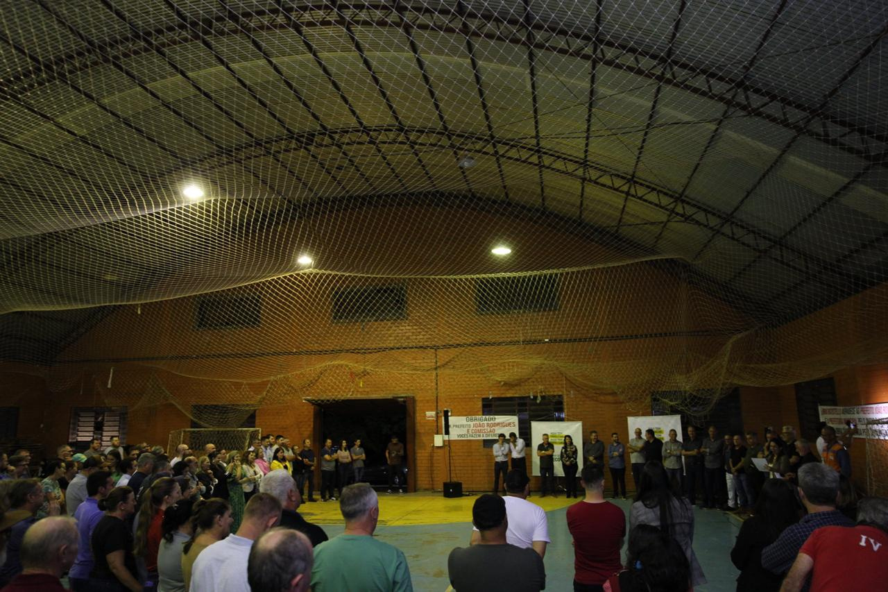"É o maior programa de pavimentação rural de Santa Catarina. Nós valorizamos quem produz e levamos qualidade de vida e desenvolvimento para o interior. Também vamos colocar lâmpadas de LED aqui na comunidade e nós próximos dias vamos anunciar o asfalto da sede do Distrito de Alto da Serra, num investimento de R$ 3 milhões.