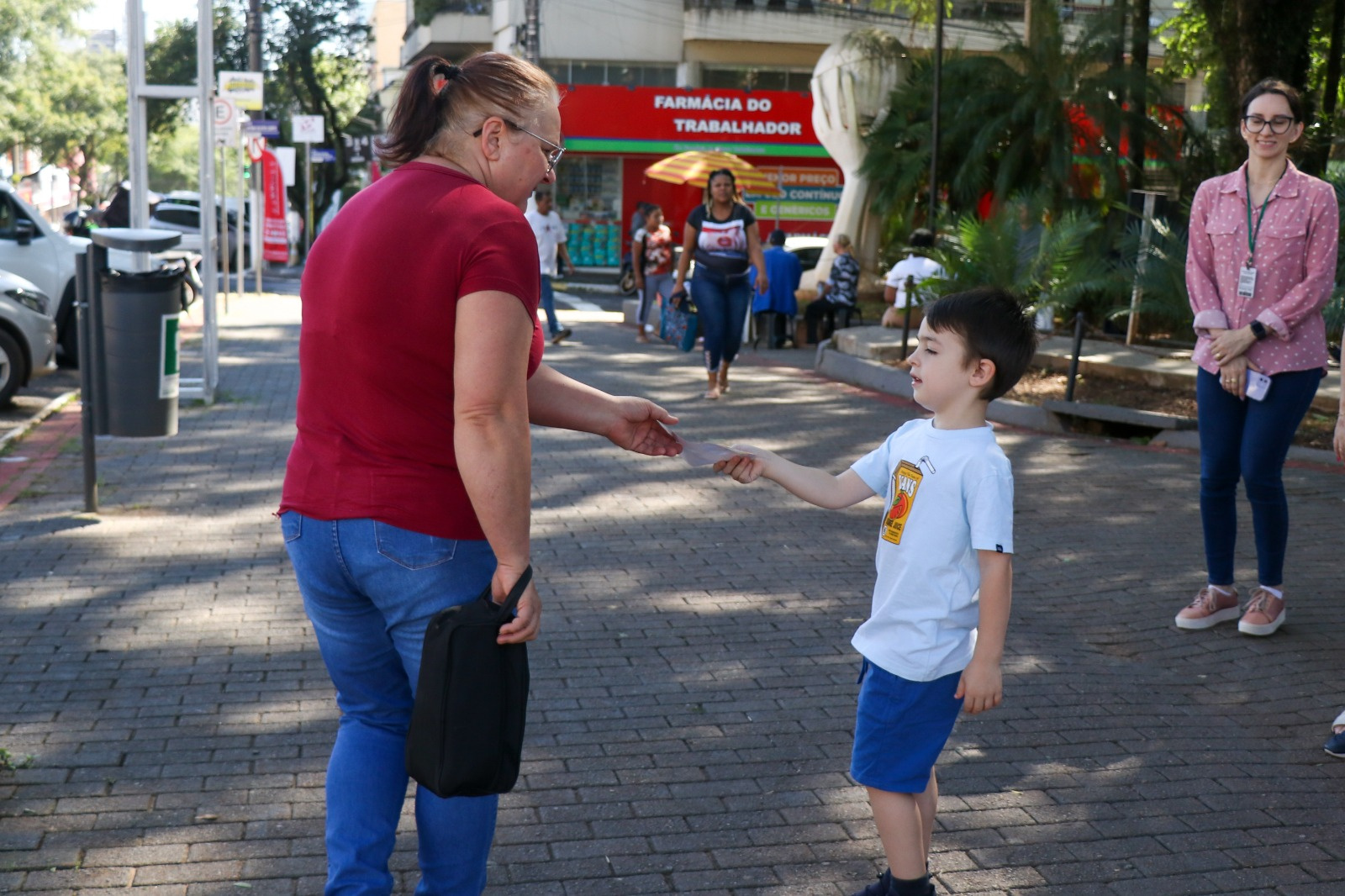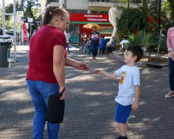 Para finalizar o projeto, foi realizada a entrega de 500 panfletos, uma parte para as famílias do CEIM e a outra para os moradores de Chapecó que passaram pela praça central no dia de hoje. Na oportunidade, as crianças também visitaram a Secretaria de Educação, conheceram o espaço e entregaram o material para os funcionários do local.