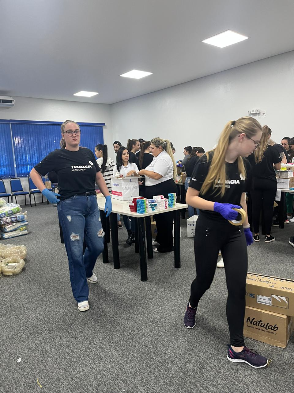 Na questão dos medicamentos a presidente da Associação dos Farmacêuticos de Chapecó e Região, Hortência Tierling, informou que equipes da Secretaria de Saúde e universitários estão colaborando na triagem dos medicamentos.