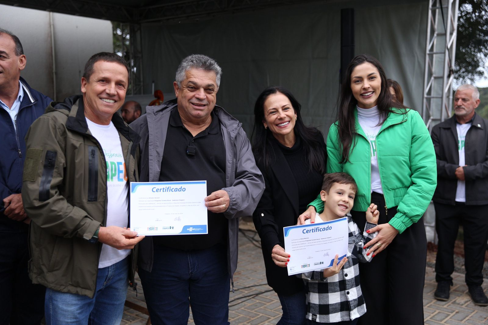 A solenidade contou com a presença dos representantes do Sebrae/SC, o gerente regional no oeste, Udo Martin Trennepohl, a gestora regional no oeste do Programa Cidade Empreendedora, Gabriela da Costa Heming, a consultora articuladora do Programa Cidade Empreendedora no oeste, Isabela Nascimento, as consultoras especialistas em turismo Karla Hall e Silvia Nowalski. Também prestigiaram o anfitrião e empreendedor Silvano Vaccaro e a esposa Diana Moreira, o prefeito de Chapecó, João Rodrigues, a primeira-dama, Fabiana Matte Rodrigues, o vice-prefeito Itamar Agnoletto, o presidente da Câmara de Vereadores, André Caetano Kovaleski, o diretor de Empreendedorismo e Turismo, Luiz Roberto Tillmann, o diretor de Desenvolvimento Econômico, Márcio da Paixão Rodrigues e os empreendedores das rotas turísticas.