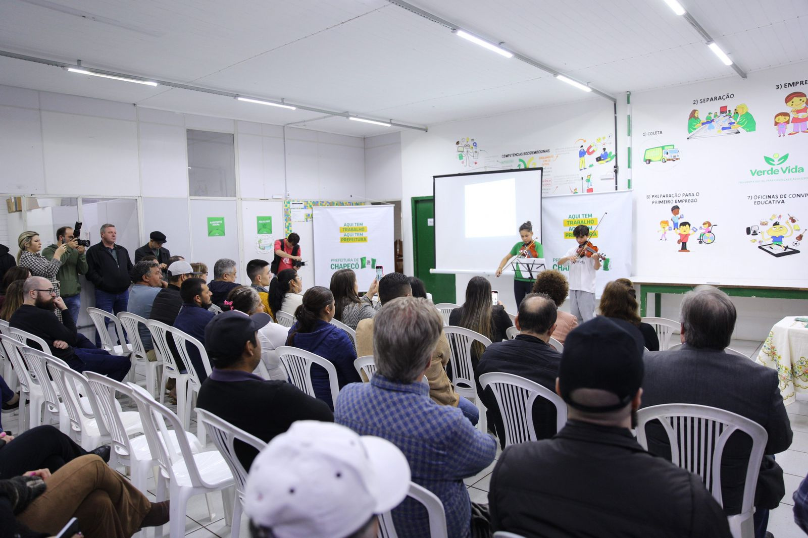 O Verde Vida atende 160 crianças e adolescentes, de oito a 17 anos, com 15 oficinas educativas. Uma delas é de violino. Maria Luiza da Silva e Luiz Gabriel da Silva, ambos com 12 anos, participam dessa oficina e fizeram uma breve apresentação.