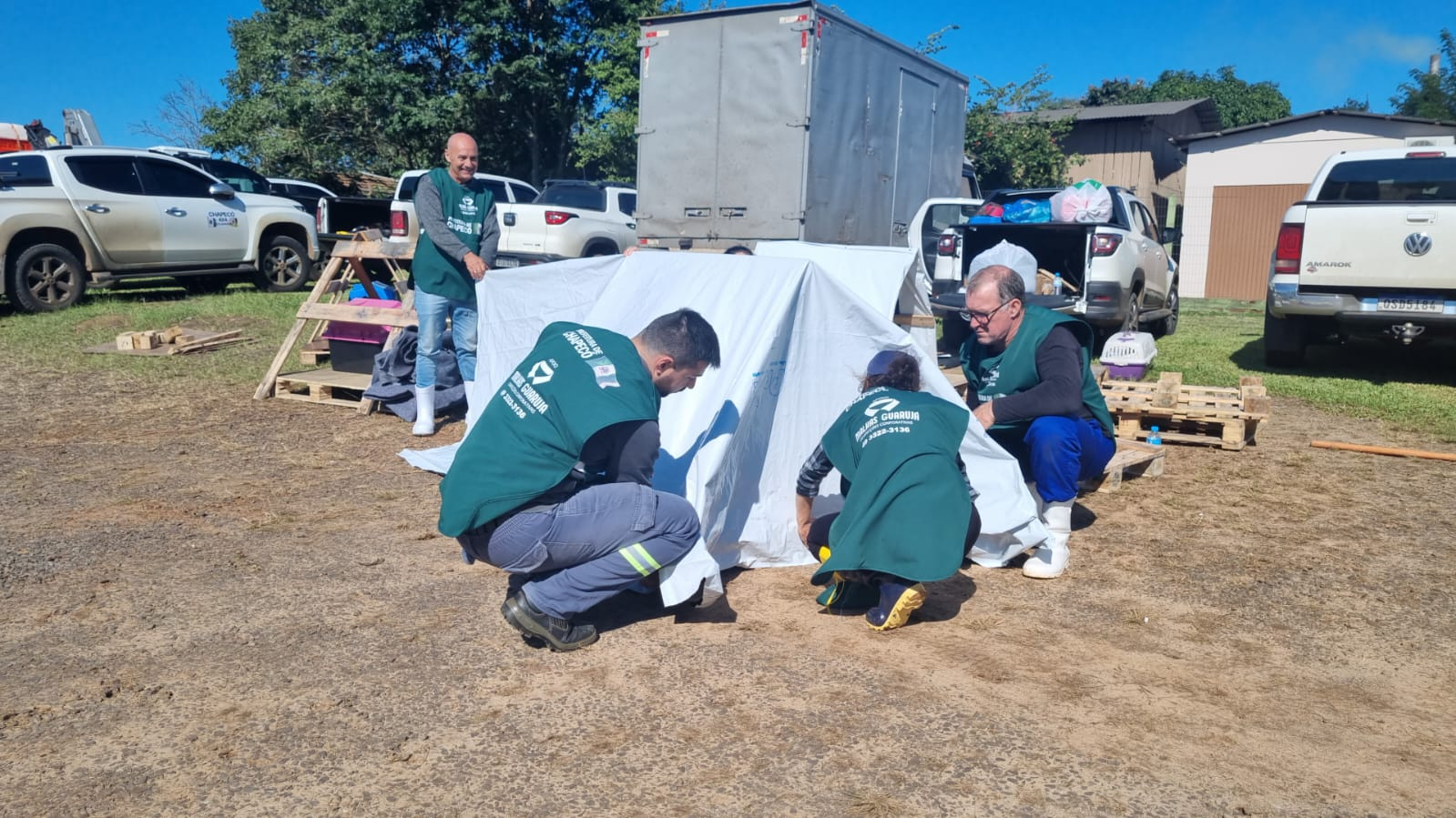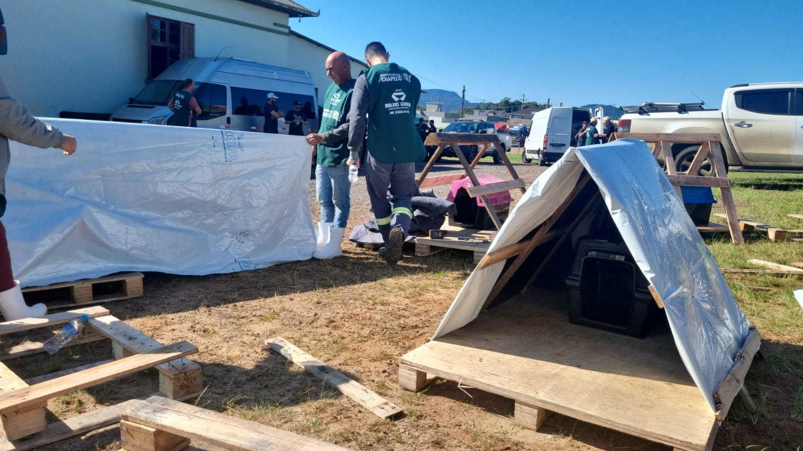 Uma equipe de 50 voluntários e 20 veículos está desde segunda-feira em Arroio do Meio, organizando o alojamento e a cozinha e a alimentação para a chegada do comboio. O coordenador da Defesa Civil de Chapecó, Luciano Hüning, disse que a cidade gaúcha está muito grata com o apoio.