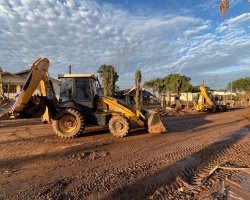 Além disso tem uma equipe de coordenação dos 12 caminhões caçamba e cerca de dez máquinas pesadas, como patrolas, escavadeiras, carregadeiras, rolo e bobcats, que estão atuando na limpeza e desobstrução das vias. De acordo com o engenheiro da Secretaria de Serviços Urbanos, Eduardo Olivo, todas as ruas do centro e os lotes estão prejudicados, com muito lodo e lixo acumulados. Algumas máquinas e caminhões-pipa estão auxiliando nessas ações. Outra equipe está no interior, abrindo os acessos das estradas.