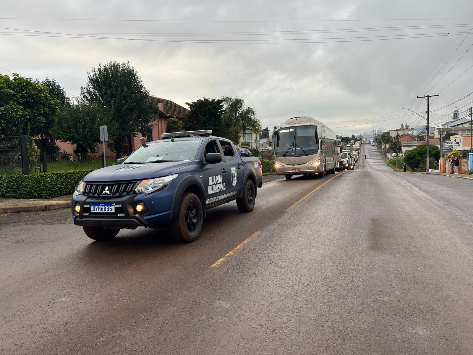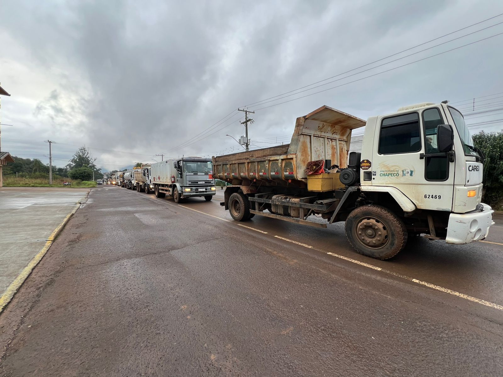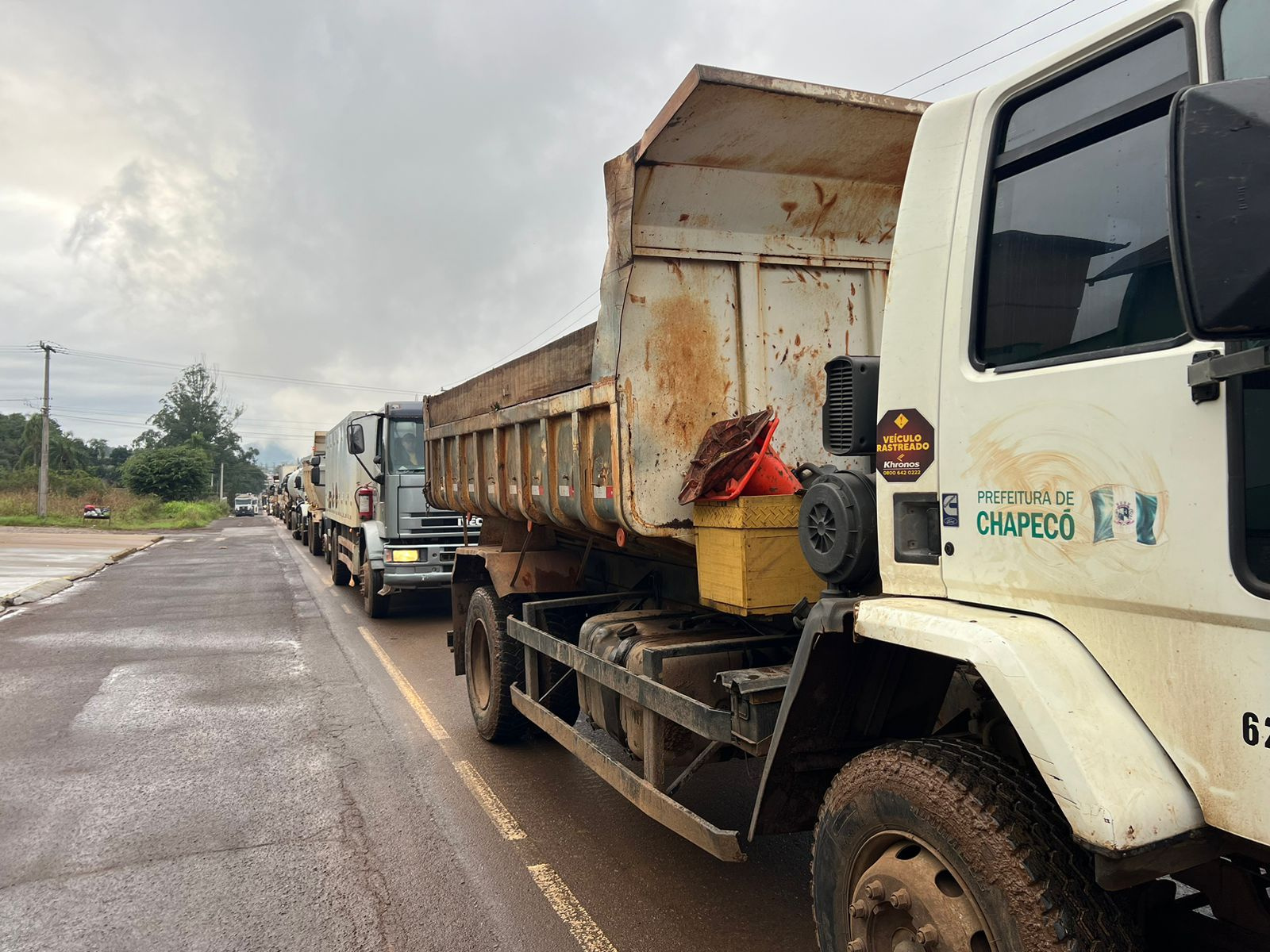 Depois de uma semana de trabalho em Arroio do Meio-RS o comboio com cerca de 30 caminhões e máquinas pesadas da Prefeitura de Chapecó, além dos 200 voluntários de Chapecó e Região, está retornando neste domingo para Santa Catarina. A saída foi por volta das 8h e a previsão é de chegar em Chapecó à tarde.