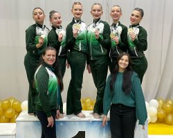 Já o segundo lugar com o trio juvenil aparelho fita, ficou para as atletas Alice Gomes Vieira, Beatriz Fumagalli e Camille Basso Tafarel. Ainda o terceiro lugar, no aparelho bola, e o quinto lugar no geral com a atleta Suyane Antunes da Rosa.
