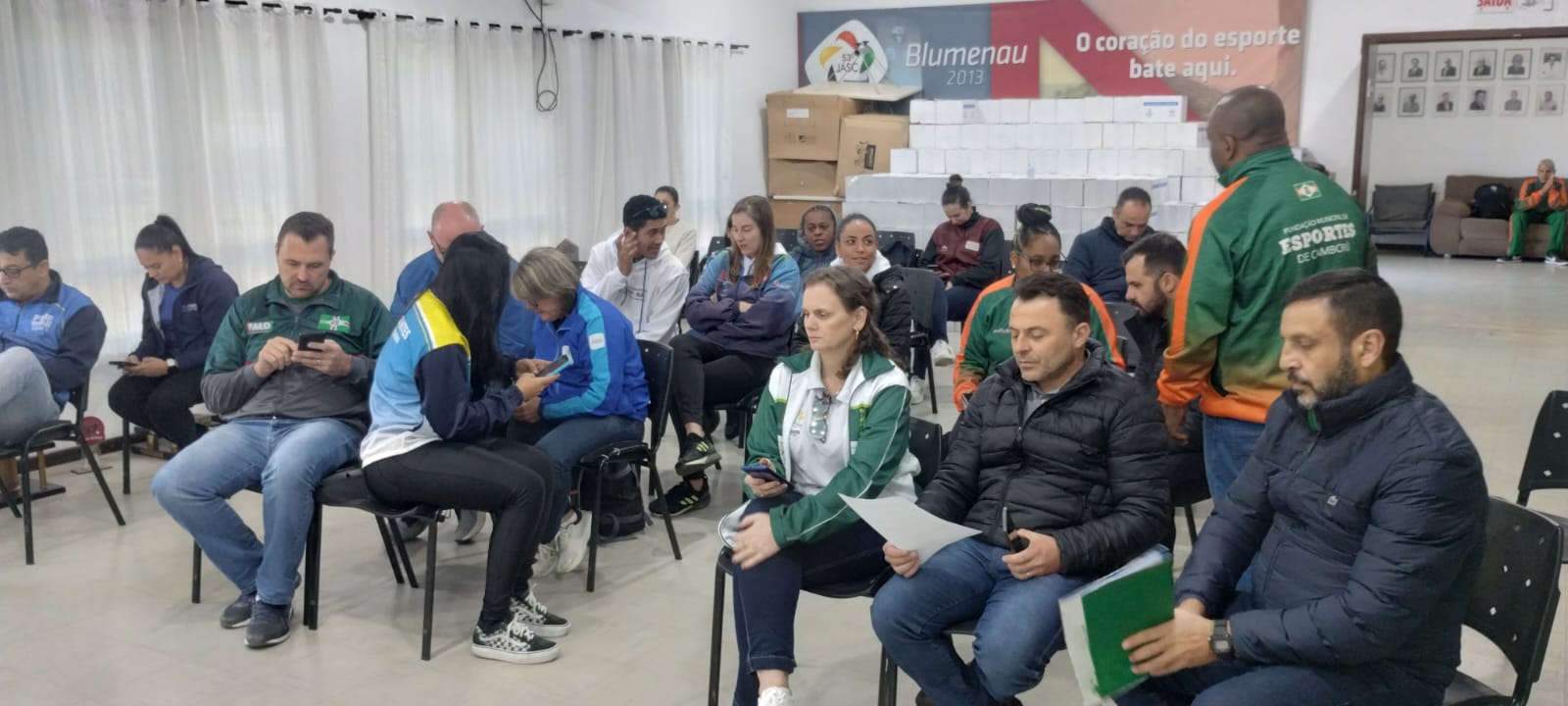 O Presidente da Fundação de Esporte de Chapecó, Agnaldo Veriato Pereira, e o Gerente Mario Tomasi, representaram o município de Chapecó. Nesta reunião o Gerente de Participação Willian Scheffer Santos e o Diretor de Esporte Aurélio Rocha Dos Santos representaram a Fesporte. Houve uma cobrança para que a modalidade aconteça em um prazo de 30 dias, já que os atletas estão todos preparados para competir. O Presidente da FEC, Agnaldo Veriato Pereira, propôs que a competição aconteça e a Fesporte pague as despesas dos municipios para a nova data da competição: Propomos para que o Atletismo seja realizado e a Fesporte arque com as despesas para que os municípios se desloquem novamente até Blumenau. Nós já tivemos gastos e a Fesporte precisa nos auxiliar disse Agnaldo.