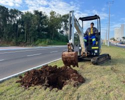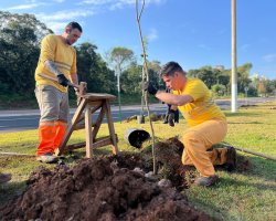 Além do plantio está sendo realizado o estaqueamento e a irrigação. A previsão é de finalizar os trabalhos até sexta-feira, pelas equipes da Secretaria de Serviços Urbanos e Zeladoria.