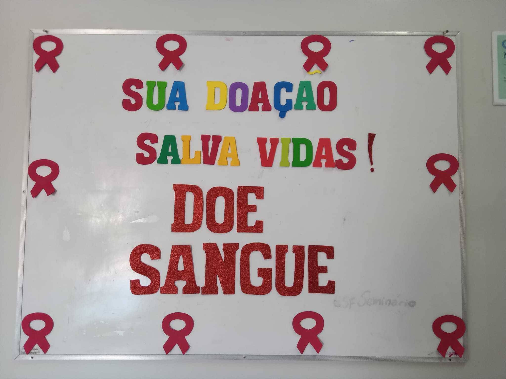 ✔ Sala de espera abordando a importância da doação de sangue;