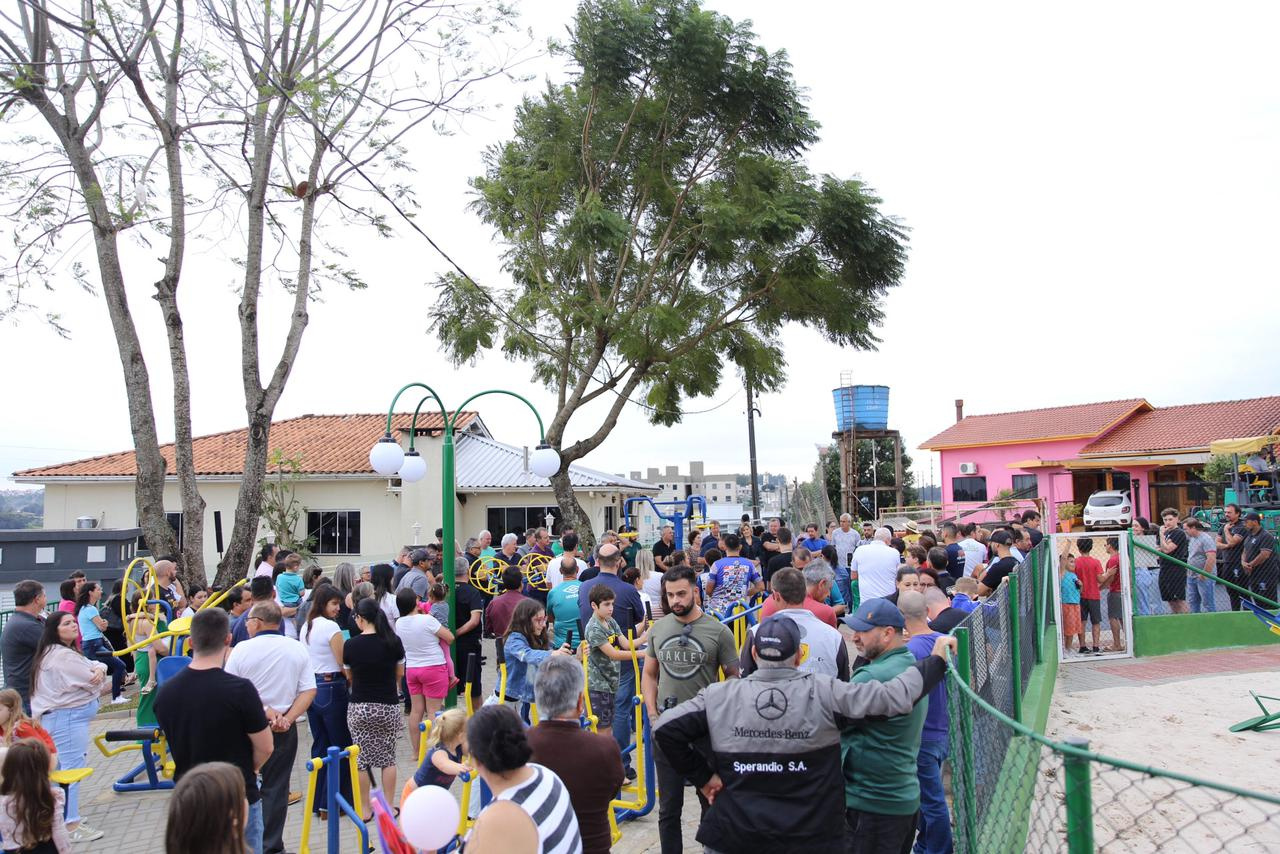 Flávio Alberto Bringenti falou em nome da comunidade e das famílias que realizaram a doação dos recursos para revitalização da praça. Ele agradeceu o apoio da administração municipal e pediu que os moradores ajudem a cuidar do espaço.