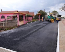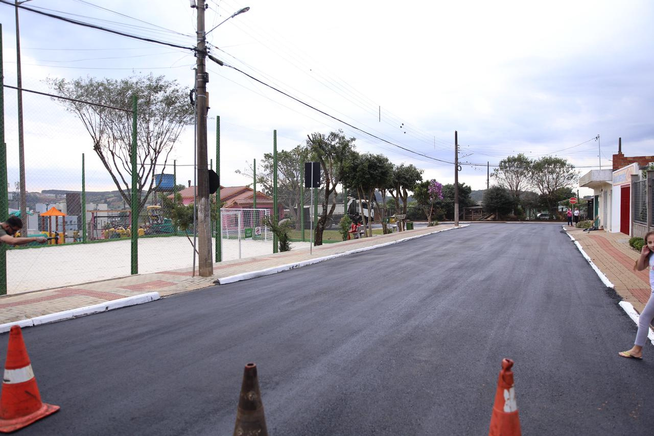 No asfalto, são cerca de 1.155 metros próximos da praça, somando os trechos das ruas Moscou, Dilson Cechin e 14 de agosto. Receberam asfalto ainda as ruas Viena, Soldado Gerson da Silva e João Minela, totalizando 8 mil metros de vias pavimentadas.