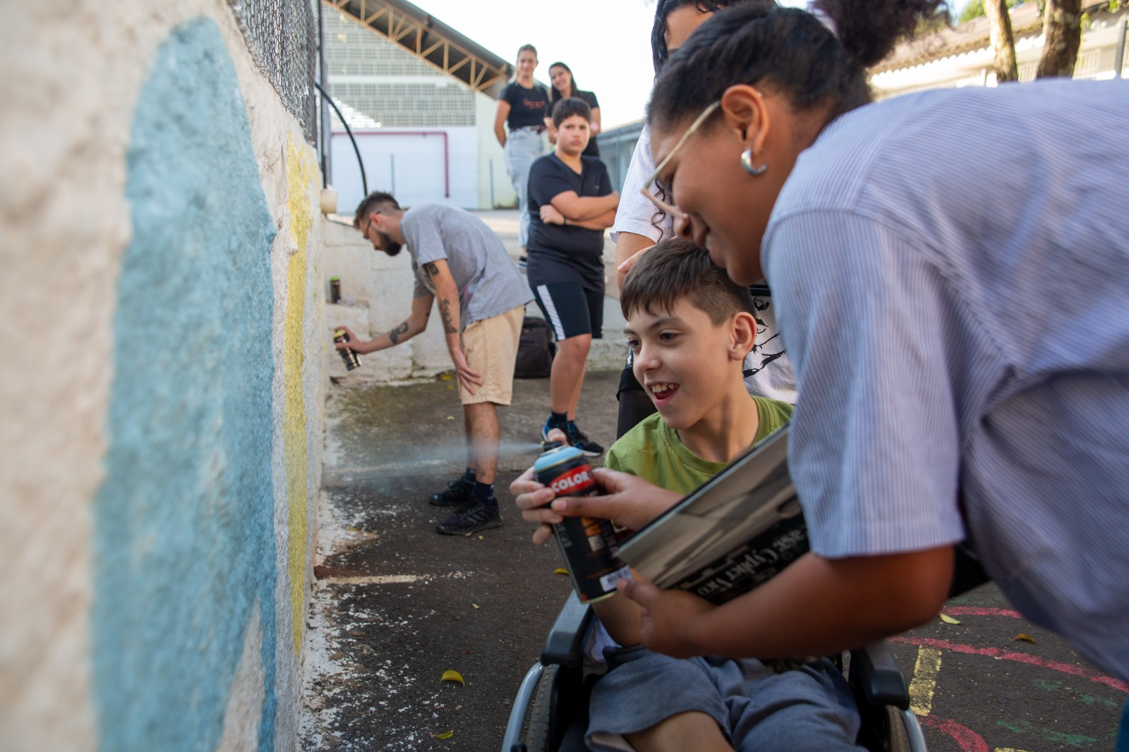 Na última sexta-feira, 14 de junho, os alunos das turmas 72 e 73 do 7º ano da EBM Diogo Alves da Silva tiveram a oportunidade de se envolver em uma experiência única: uma oficina de grafite. O evento, promovido em parceria com profissionais da arte urbana, buscou introduzir os estudantes no universo do grafite, proporcionando-lhes conhecimentos sobre a história desse movimento e técnicas para expressar sua criatividade, bem como a relação desta arte com a cultura afro.