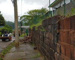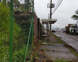 Devido às chuvas o muro entrou em colapso e a Defesa Civil, em conjunto com a Secretaria de Serviços Urbanos, esteve no local e auxiliou na remoção das pedras e também na contenção. O local foi isolado mas a passagem pela rua, que tem um ponto de ônibus, está livre, disse Lara.