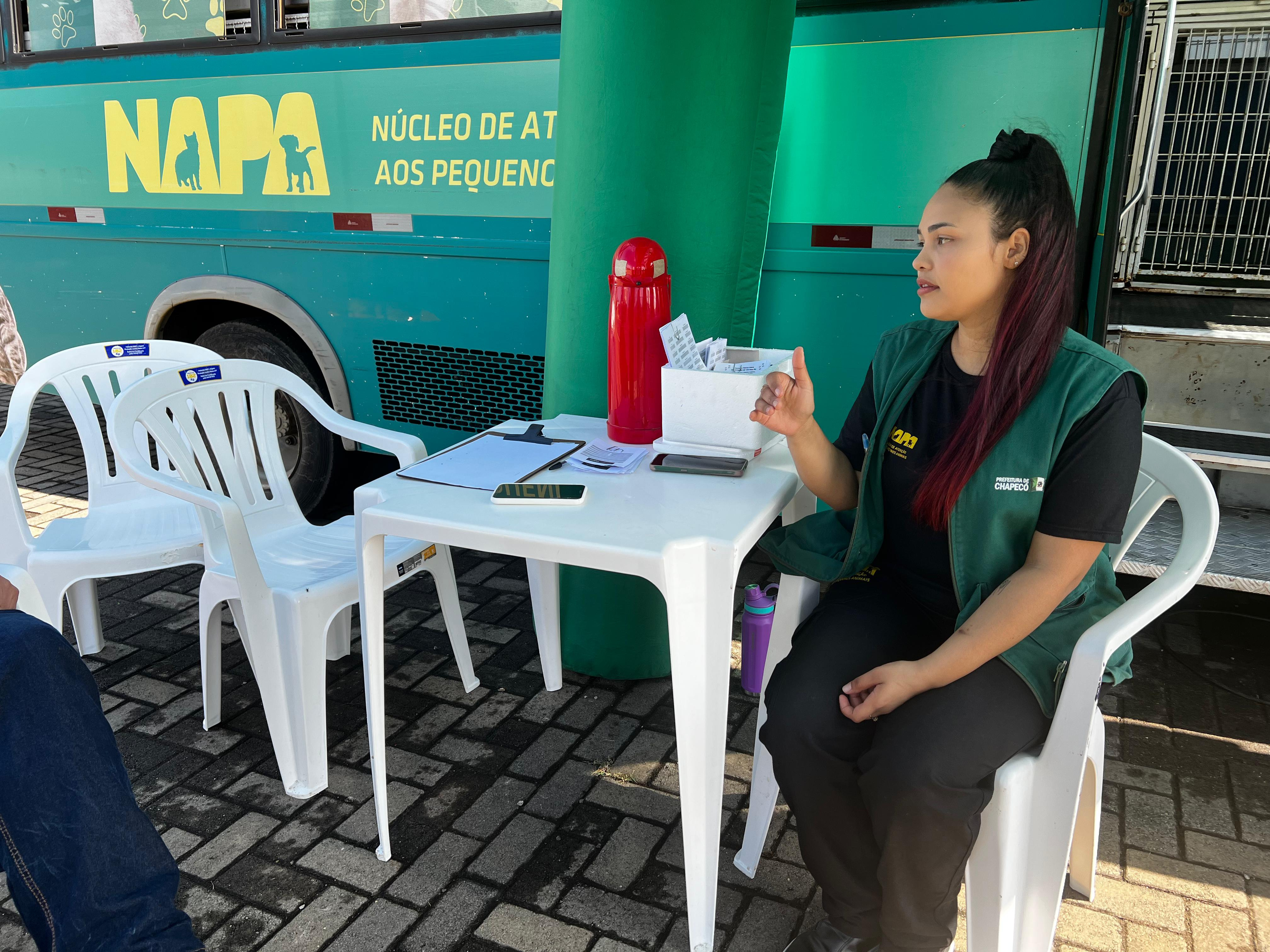 O Núcleo de Atenção aos Pequenos Animais (NAPA) realizou hoje (16), uma ação de cuidado animal na Praça da Família, no Bairro São Pedro. A iniciativa, intitulada "NAPA - Vai ao Bairro", teve início com a vacinação contra a raiva, vermifugação e consultas veterinárias gratuitas para os animais que mais necessitam.