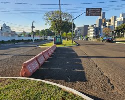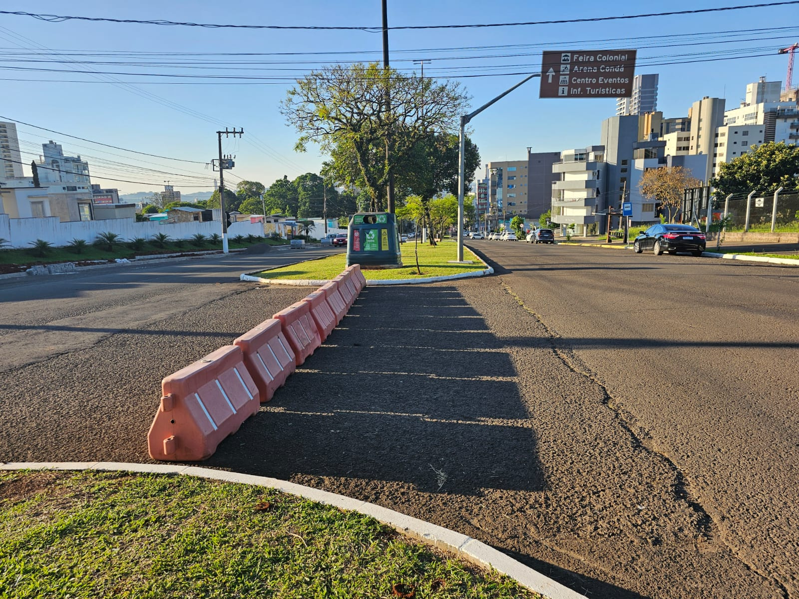 Também foi implementada uma rotatória no cruzamento da Rua Florianópolis com a Rua Porto Alegre.