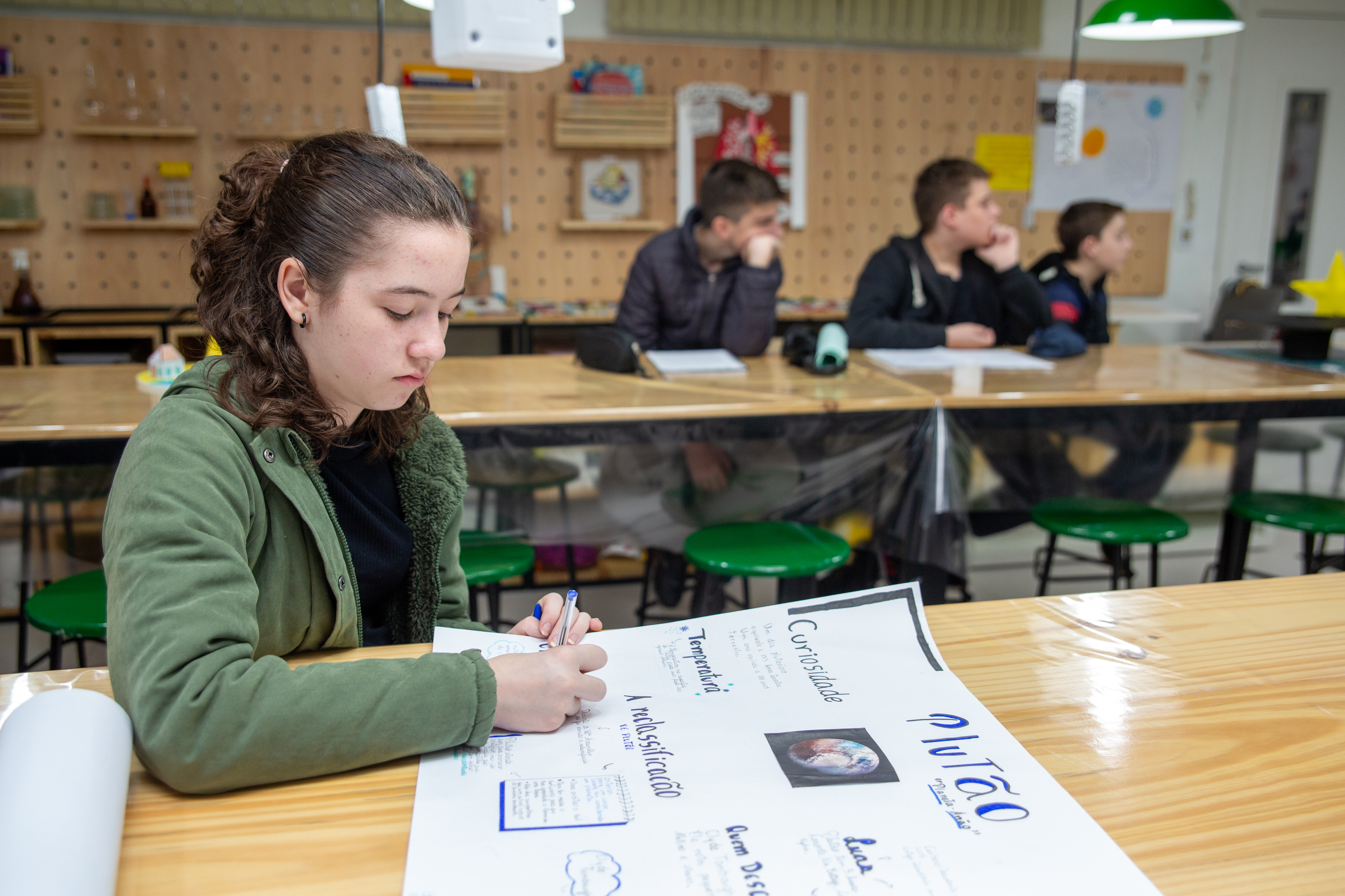 Os estudantes do projeto Desbravadores do Universo - Clube de Astronomia e Astronáutica da Rede Municipal de Ensino - pesquisaram, nas últimas semanas, sobre a história da astronomia. Durante os encontros, os alunos produziram maquetes e cartazes, além de realizarem apresentações e discutirem as temáticas escolhidas com os demais colegas.