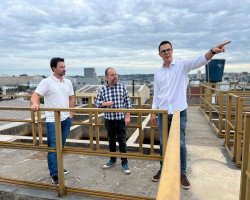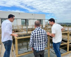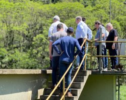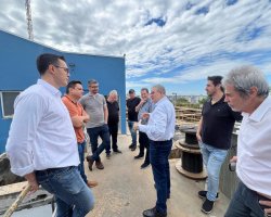 Acompanharam a visita o Procurador Geral do Município, Jauro Sabino Von Gehlen, e o fiscal de contrato, o engenheiro sanitarista e ambiental Valdir Eduardo Olivo. Eles foram recebidos pelo superintendente regional de negócios da Casan, Pery Fornari Filho.