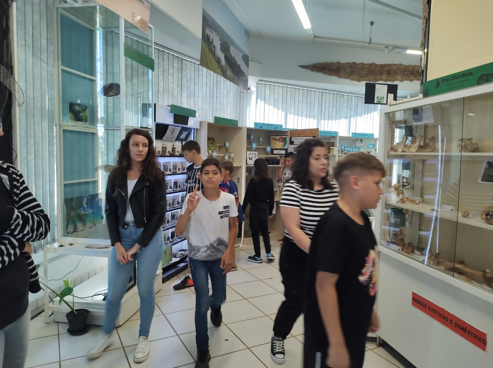 No dia 17 de outubro, as crianças e adolescentes do Centro de Convivência e Fortalecimento de Vínculos Alvorada, por meio da Secretaria da Família e Proteção Social, foram visitar o Centro de Memória do Oeste de Santa Catarina e o Museu de Ciências Naturais, na Unochapecó, com o objetivo de conhecerem locais diferentes e de aprendizagem. Além de conhecer a história do município, as crianças tiveram oportunidade de saber sobre a fauna e flora da nossa região, que foi tema central da atividade desenvolvida no serviço, pois, as crianças utilizaram folhas e galhos coletados no jardim para reproduzir as obras, recriando alguns animais em seus meios.