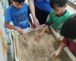 Os pequenos inovaram em suas produções, atribuindo nomes e contextos para seus animais, consideraram superdivertido trabalhar com materiais alternativos e se apegaram a eles, por representarem uma construção de ideias desenvolvidas desde a visita até as produções finais. As monitoras Adriane Debiasi, Eliane Camargo de Oliveira e Gabriele Moratelli que orientaram a atividade, ficaram surpresas que os participantes foram além do explicado e exploraram até os animais do fundo do mar, demonstrando muita criatividade e imaginação.