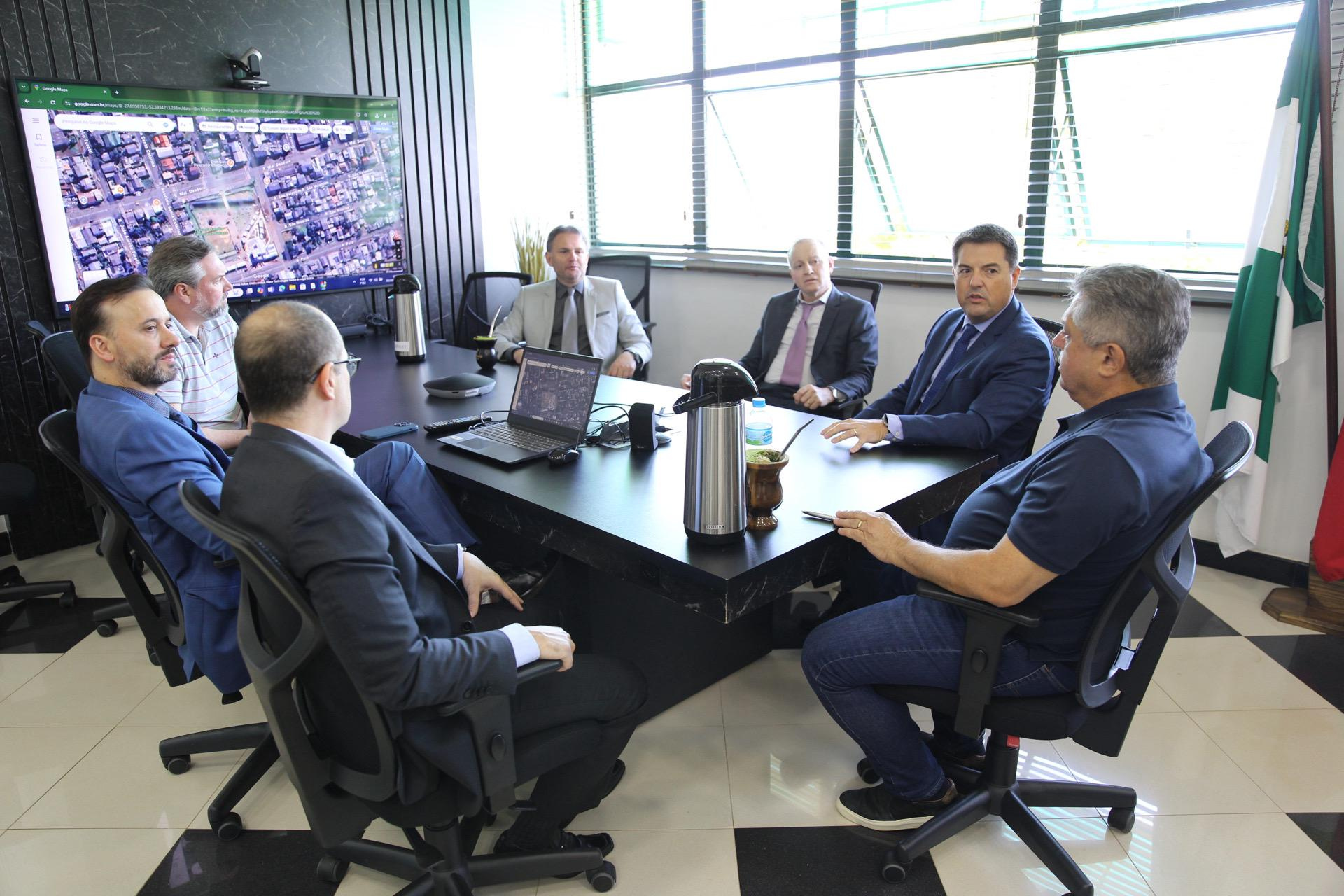 O prefeito de Chapecó, João Rodrigues, recebeu nesta quarta-feira, em seu gabinete, a visita institucional do Diretor do Foro de Chapecó, Juliano Serpa. Ele estava acompanhado dos juízes de Direito Marcos Bigolin, da 3a Vara Cível, Rogério Carlos Demarchi, da 1a Vara da Fazenda Pública e Erminio Amarildo Darold, da 1a Vara da Família, Idoso, Órfaos e Sucessões. Os advogados Thiago Etges e Márcio Bueno, que é presidente do Conselho de Segurança de Chapecó, também estiveram presentes.