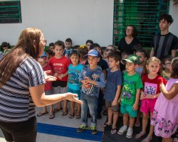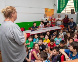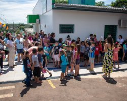 Tagiane Bet, vice-gestora da Educação Infantil da EPC Cyro Sosnosky, explicou o objetivo da visita. Nós pensamos em acolher além das crianças as famílias, para eles se sentirem mais seguros em deixar os filhos deles aqui, no próximo ano, na transição da Educação Infantil para o Ensino Fundamental. Além disso, vamos evidenciar novamente a estrutura e a logística das séries iniciais com os alunos do Cyrinho, que já conhecem o espaço, disse.