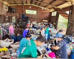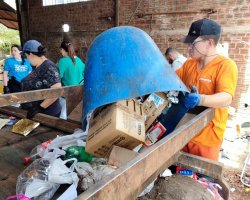 Agora, entre as etapas do plano está o Plano de Gestão Integrada de Resíduos Sólidos - PGRS. Nesta semana, a etapa é coleta de dados e diagnóstico. O processo está acontecendo nas Associações de Catadores que possuem local adequado. A metodologia de quarteamento para identificar a partir da separação feita pela comunidade, a geração de resíduos e suas quantidades, através da gravimetria faz amostras, com a separação dos resíduos conforme o tipo e pesagem.