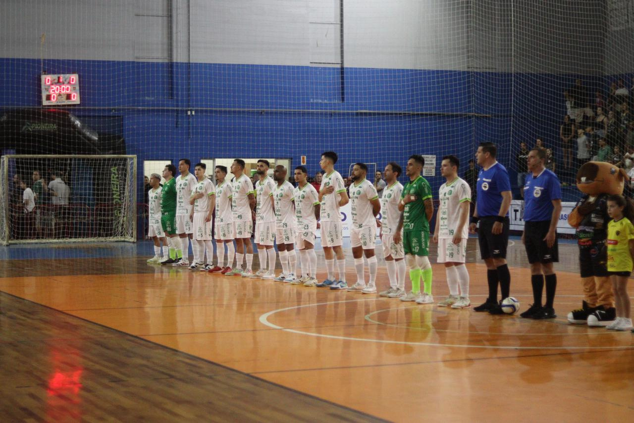 Em uma primeira etapa equilibrada, as redes balançaram apenas nos minutos finais. Aos 1640, João Seco abriu o placar para a Chape Futsal. Pouco depois, aos 1720, JP empatou para os donos da casa, mas os visitantes retomaram a dianteira no marcador com gol de Ximba, aos 1820.