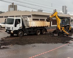 De acordo com o engenheiro sanitarista da secretaria, Eduardo Olivo, entre os pontos atendidos estavam a Condá x Lauro Müller, Israel x Uruguai, e rua São Marcos, no bairro Santa Maria. No mesmo bairro teve uma tampa de galeria que estourou e fez subir o asfalto, na rua Domingos Baldissera. As equipes fizeram o conserto. Na rua Marechal Bormann, no centro da cidade, as galerias não deram conta do volume de água e a Prefeitura esteve no local para fazer a limpeza. Nesta sexta-feira o trabalho seque na rua Guaranis e em outros pontos da cidade.
