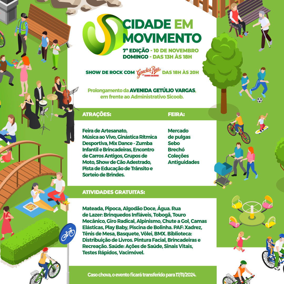 No domingo (10) acontecerá em Chapecó a sétima edição do projeto Chapecó em Movimento, a partir das 13h, na Avenida Getúlio Vargas, entre as ruas Benjamin Galloti e a Dalva de Oliveira, próximo do Sicoob e fundos da Cooperalfa.