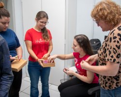 Os estudantes de 9º ano, da EBM Manira Terezinha Clenis Sarquis Sartori, criaram a empresa Pulso Arte a partir dos conhecimentos adquiridos nas aulas de empreendedorismo, com a orientação das professoras Franciele Sotoriva e Adriana dos Santos Mueller.