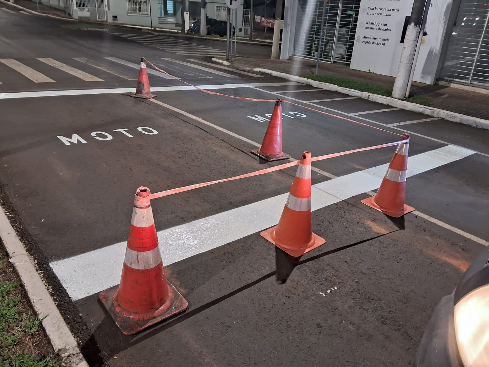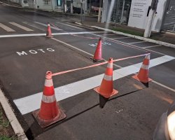 Na rua Uruguai estão sendo implantados bolsões para moto nos cruzamentos com as avenidas Nereu Ramos, Fernando Machado e Porto Alegre.