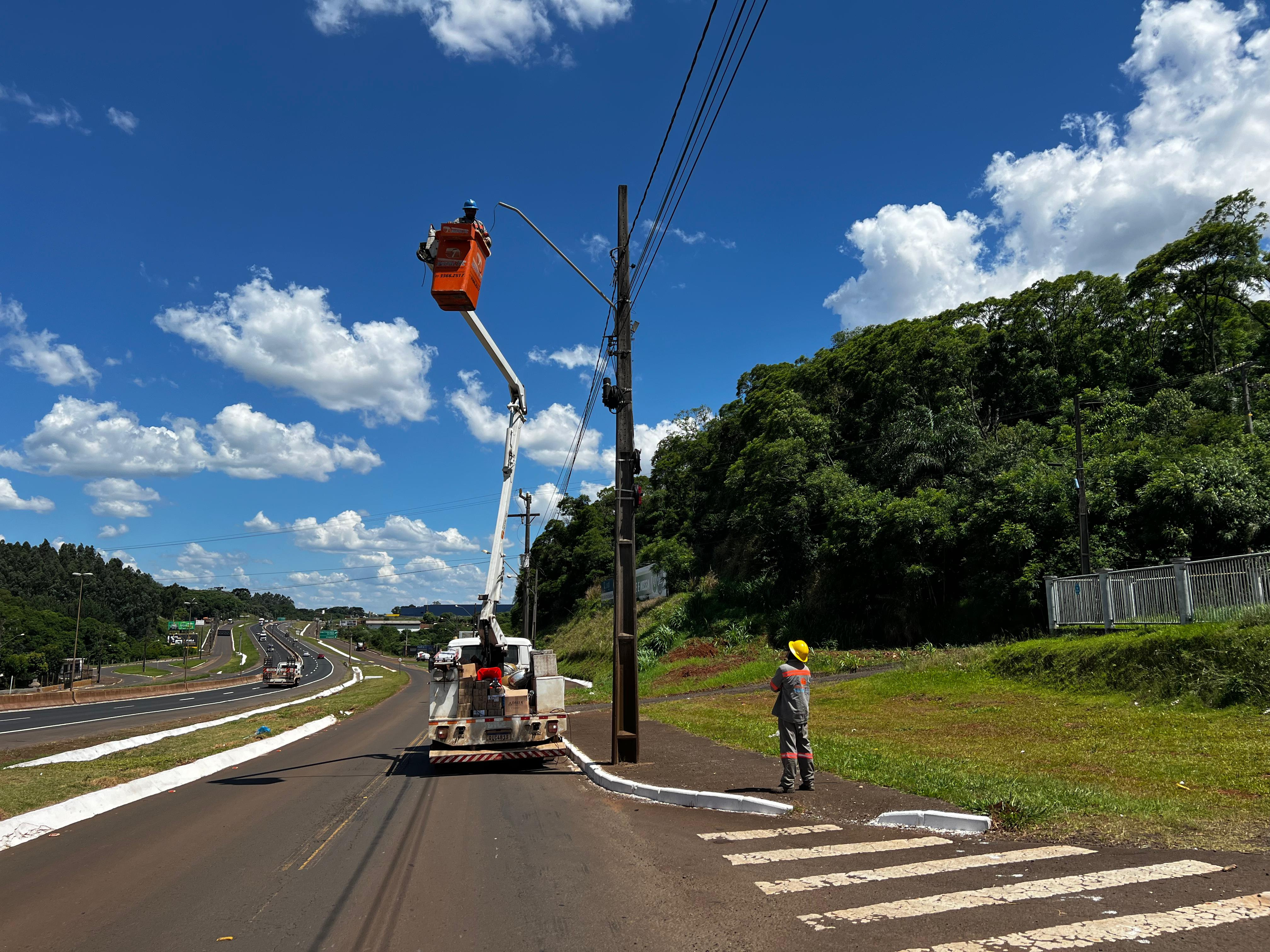 A Prefeitura de Chapecó iniciou nesta segunda-feira a substituição das lâmpadas nas marginais do acesso Plinio Arlindo de Nes, na BR-480. As unidades antigas ou queimadas serão substituídas por LED.